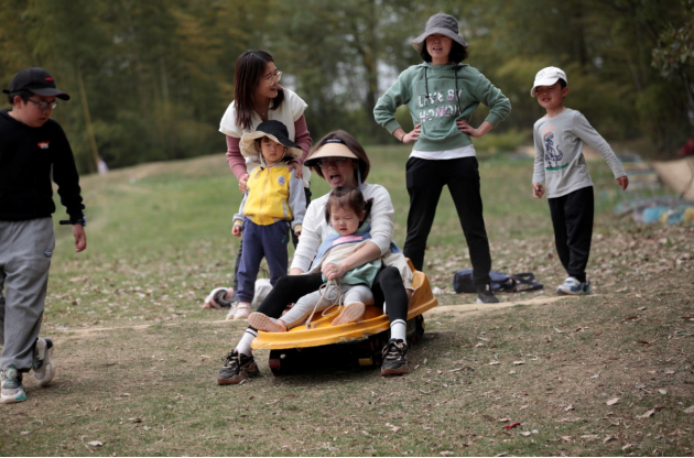 老师和家属们纷纷参加趣味活动,有的滑草,有的采摘水果,有的林间漫步,小朋友与骆驼、梅花鹿、羊驼、孔雀、马等动物亲密接触,欢笑声连成一片。