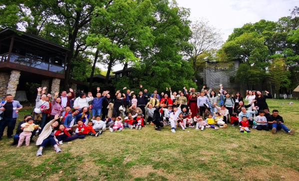 阳光明媚的周末,迎着初晨朝阳,伴着和煦春风,大人小孩们一路欢声笑语、其乐融融,一小时后到达了目的地。这里风景优美,空气清新,山清水秀,林木清幽,满眼绿色,空气中弥漫着春的气息,令人陶醉,大家不禁拿出相机拍照留念。