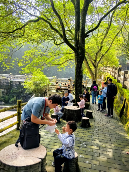 乘着车,很快来到雨鸣涧,悠闲的登上台阶,漫步在绿水青山之间,耳边泉水叮咚,呼吸着清新的空气,眺望远处隐约飘渺的群山,大家都觉得不虚此行。