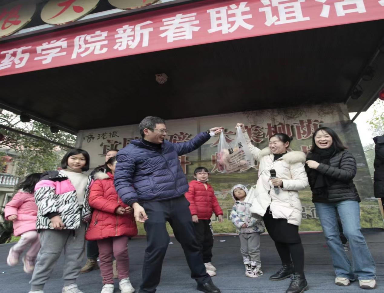 舞台挂上活动横幅,在三个场地开展跳绳、踢毽和飞镖趣味活动,在书记、院长的带领下,全院教职员工和小朋友们积极参加活动,现场一片欢乐气氛。乡下年味很浓,小朋友们第一次放鞭炮、火花,在鞭炮声声和灿烂的烟花中,欢快的跑来跑去。