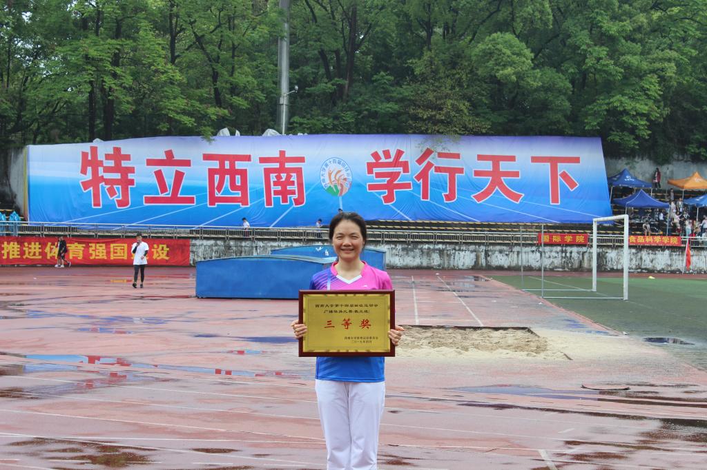 在这两天半内,Betway必威西汉姆联官方网站的运动健儿们拼尽全力在赛场上挥洒着汗水,太阳的酷热难耐减慢不了他们前行的脚步,大雨磅礴影响不了他们勇争第一的决心。第一天比赛中,我院罗红丽老师勇夺女子立定跳远第一,杨锦同学斩获了女子400米第八名的佳绩,在最后一天的广播体操比赛中,老师组荣获三等奖。他们,给我们呈现了一场场激烈精彩的比赛,给学院带来了荣誉。我们,为他们的拼搏鼓掌,为青春喝彩。