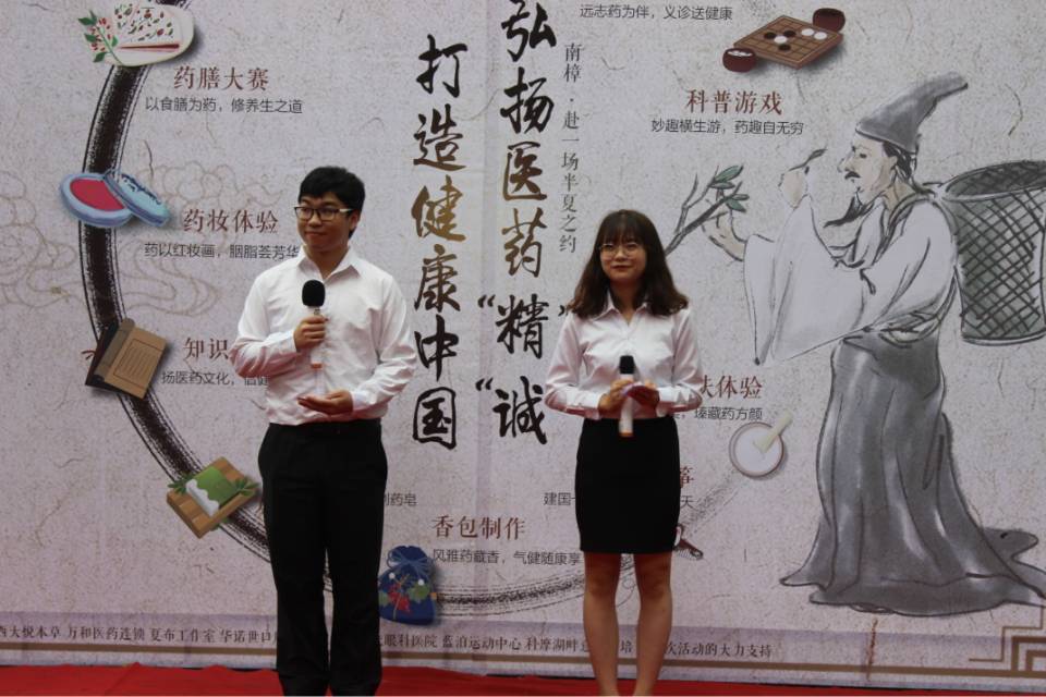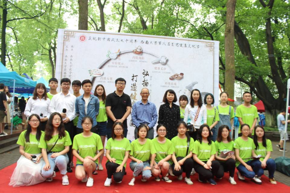 为庆祝新中国成立七十周年,展示Betway必威西汉姆联官方网站的精神、文化内涵,宣传Betway必威西汉姆联官方网站特色,增强同学们弘扬中医中药文化的使命感和责任感,继承与弘扬祖国传统中医药文化,由西南大学学生处、Betway必威西汉姆联官方网站主办的以“打造健康中国,弘扬医药精诚”为主题的第八届医药健康文化节于5月25日早上十点在南区樟树林拉开了帷幕。学生处副长高德香、校团委副书记于涛、Betway必威西汉姆联官方网站党委书记夏德全、Betway必威西汉姆联官方网站党委副书记杨坚、Betway必威西汉姆联官方网站团委书记肖媛媛参与了此文化节。还有北碚记者到现场进行采访。