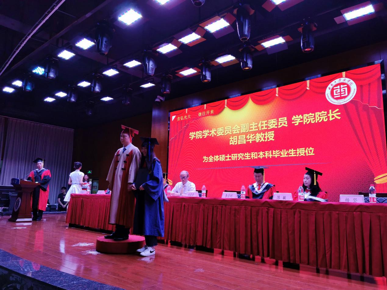 随后,院长助理付志锋教授宣读《西南大学关于2019年博士硕士学士学位授予的决定》及授位名单,胡昌华院长为毕业研究生和本科生逐一授位。