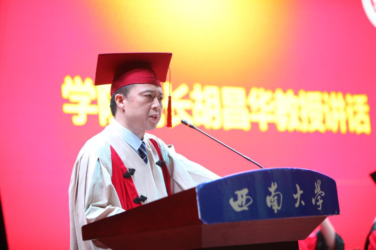 胡昌华院长发表了热情洋溢的讲话,他表示这是他作为院长致辞的第四年,非常激动。他在提及2019届毕业生中的优秀代表的基础上表示,同学们积极参与学院专业认证,参与各种项目竞赛,参与老师的科学研究,支持学院的学位点申报,为学院的改革发展做出了积极的贡献。Betway必威西汉姆联官方网站虽然年轻,但已经培养了一批批优秀的莘莘学子,在社会的各个岗位上发光发热。胡院长在临别之际赠送给毕业生三个关键词,即人品、人际和人才。希望各位毕业生不忘家国情怀,做一个有责任担当的人,牢记对国家、对民族、对人类进步的使命,胸怀天下,立足本职,锻炼过硬本领,用自己的实际行动诠释西大药学人精神。