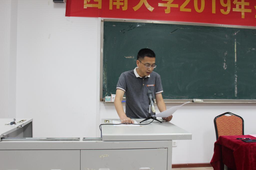 6月13日上午,在38教303隆重举行了西南大学2019年圣华曦奖学金颁奖典礼。圣华曦公司副总经理林江、Betway必威西汉姆联官方网站党委书记夏德全、Betway必威西汉姆联官方网站院长胡昌华、化学化工学院党委副书记伍宇坤、Betway必威西汉姆联官方网站党委副书记杨坚、2018-2019学年获奖学生及部分学生代表出席了颁奖典礼。仪式由党委副书记杨坚主持。