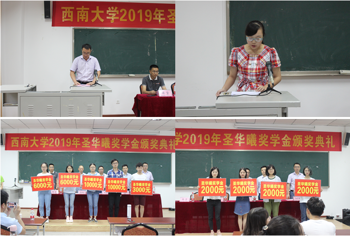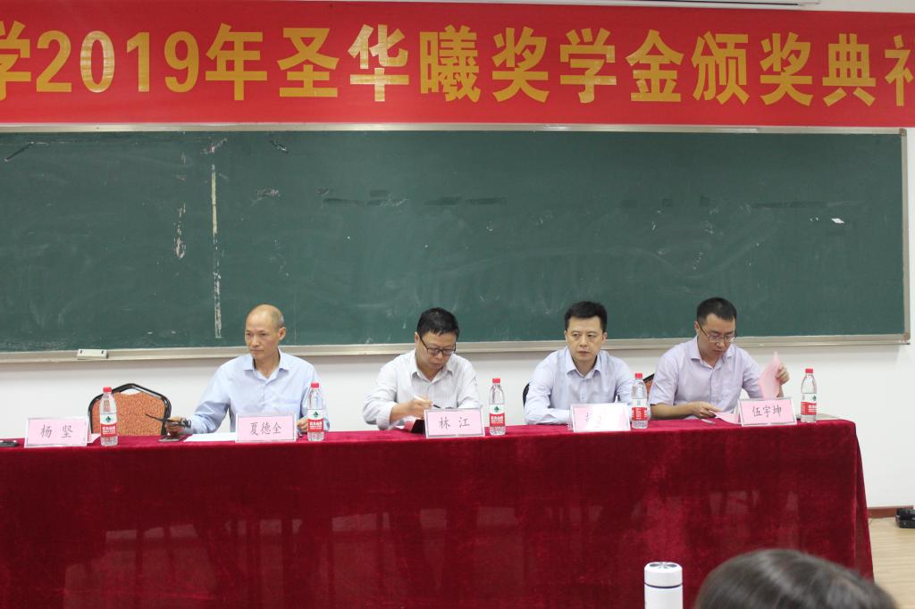 化学化工学院党委副书记伍宇坤宣读了《关于颁发2017-2018学年度及2018年秋季圣华曦奖学金的决定》随后举行了颁奖仪式。获奖学生代表杨锦也表达了对圣华曦公司的感谢,并回顾了自己一年里的学习情况,分享了自己的学习心得,表示在今后的学习生活中,更加勤奋努力,不辜负老师的期望,交出一份让学院和企业都满意的答卷。