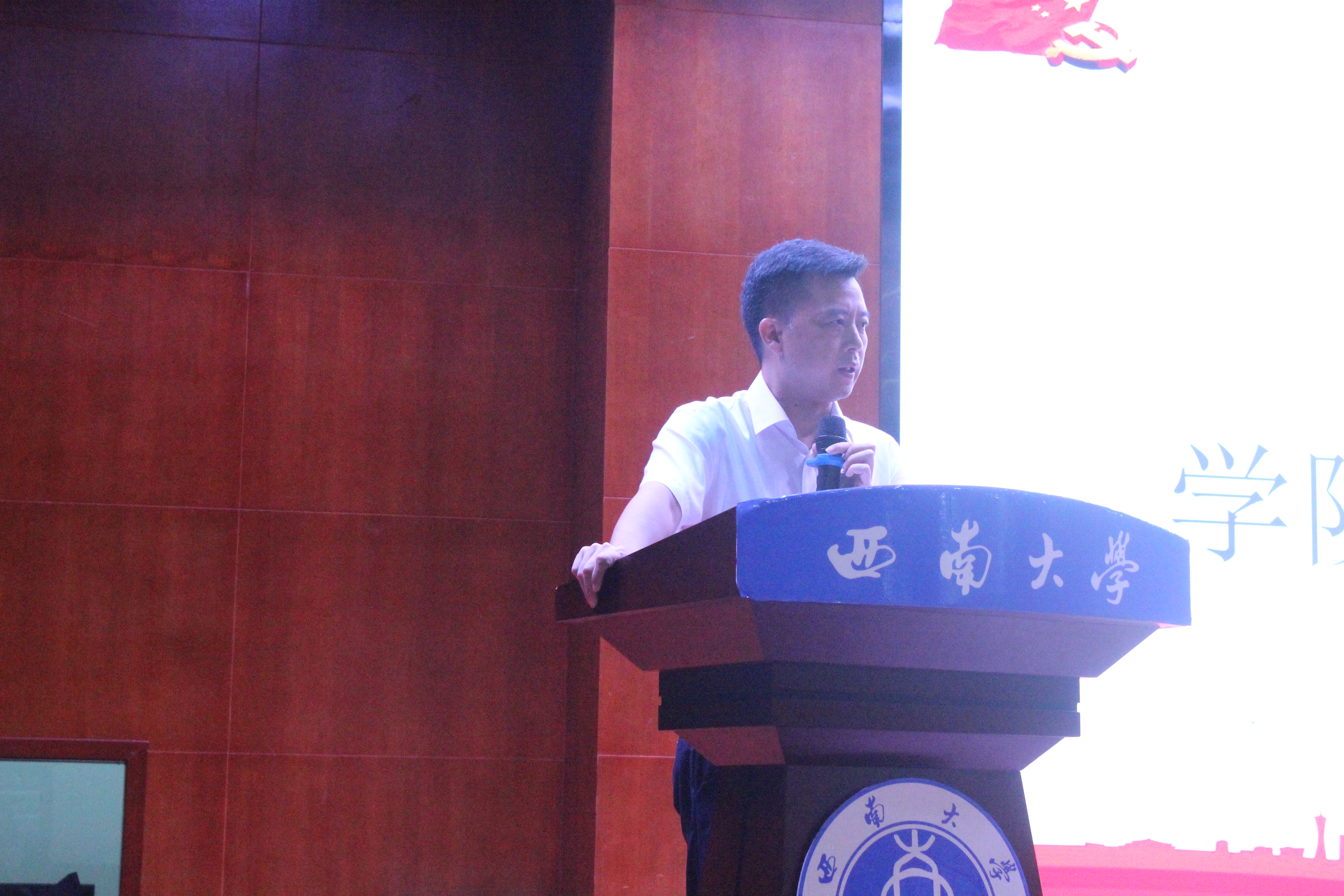 教师代表宋尔群教授就西南大学与药学专业的历史发展入题,表明师生相逢即是有缘,以前辈、老师和朋友的多重身份对同学们提出了殷切的希望,希望同学们在以后的学习中主动学习、懂得独立,能够处理好人际关系并拥有梦想。