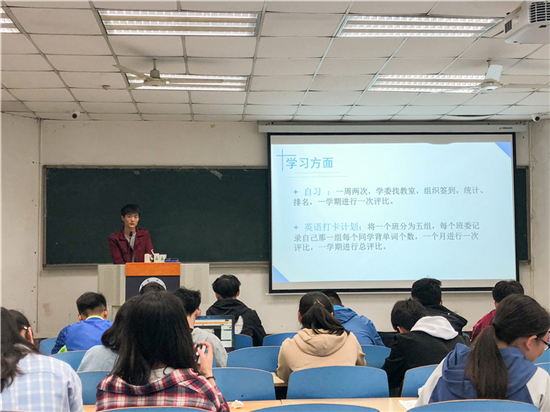 药学四班班长傅豪分享了班委如何与班级同学保持良好关系,他表示要经常性的去和同学们交流,征求建议,策划大家感兴趣的活动。