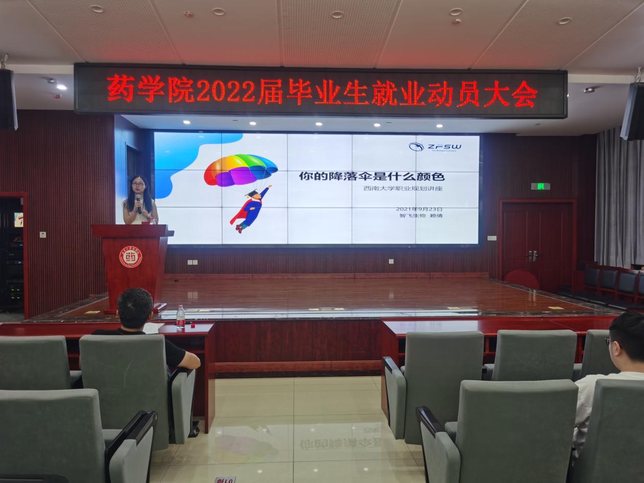 为了让同学们更好的规划自己的职业道路,学院特别邀请了智飞生物为大家做就业指导,智飞生物人力资源副总监赖倩女士为同学们做了一场精彩的职业规划讲座——《你的降落伞是什么颜色》