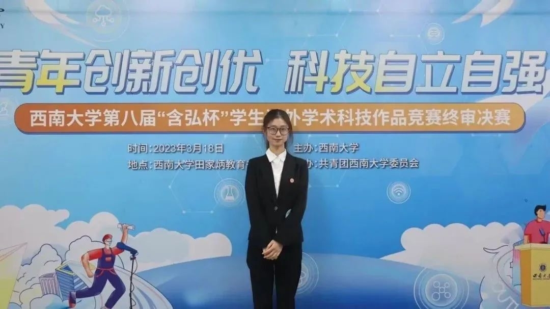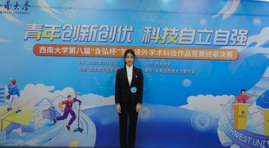 3月18日上午,西南大学第八届“含弘杯”学生课外学术科技作品竞赛决赛在田家炳教育书院圆满举行。本次“含弘杯”学院荣获优秀组织奖,李春梅教授指导的19级本科生龙薪颖的个人作品获得自然科学类学术论文类别一等奖,陈芊羽,蒋汪皓,刘青菊,沈仪方的队伍各获得三等奖。