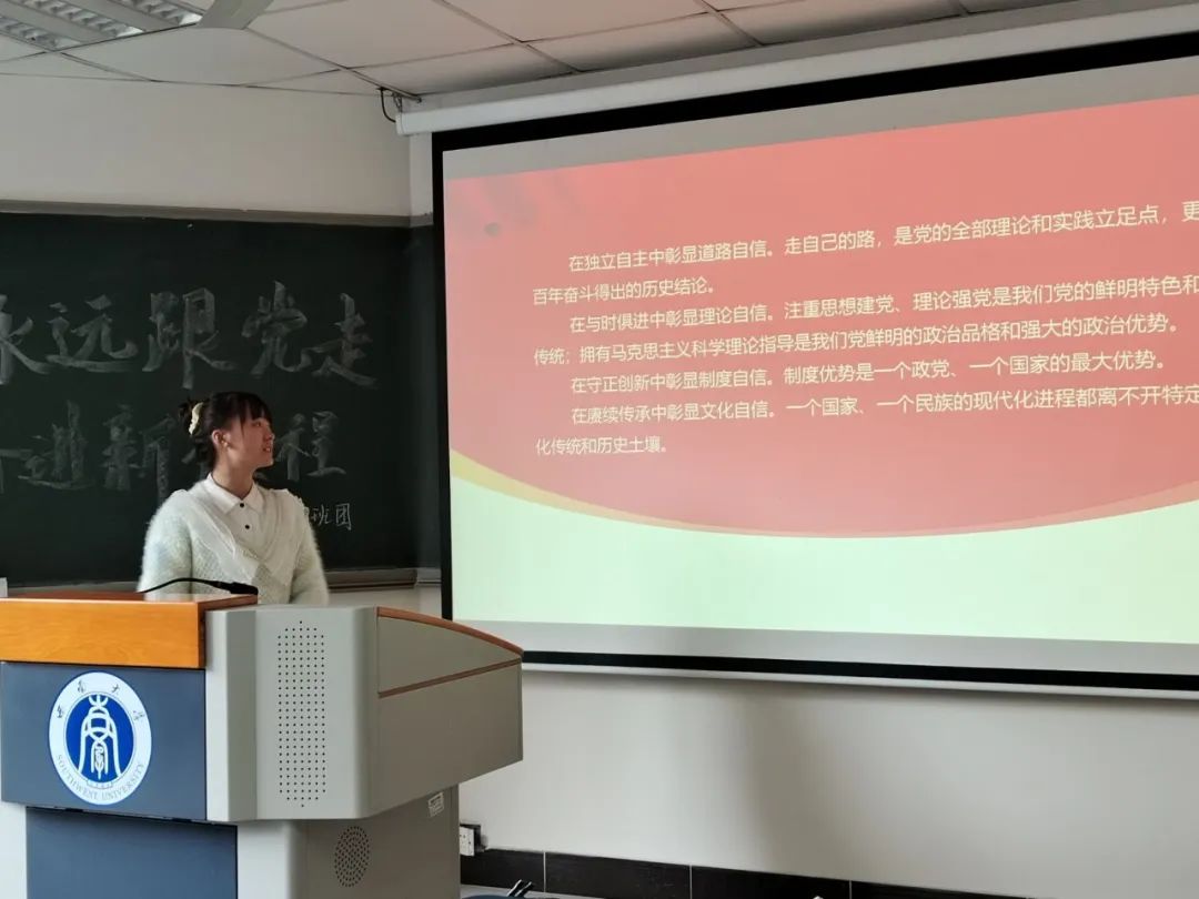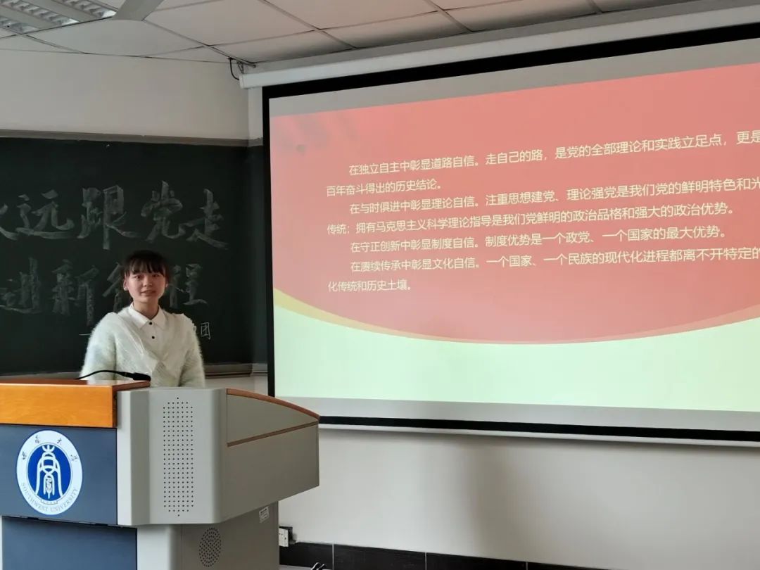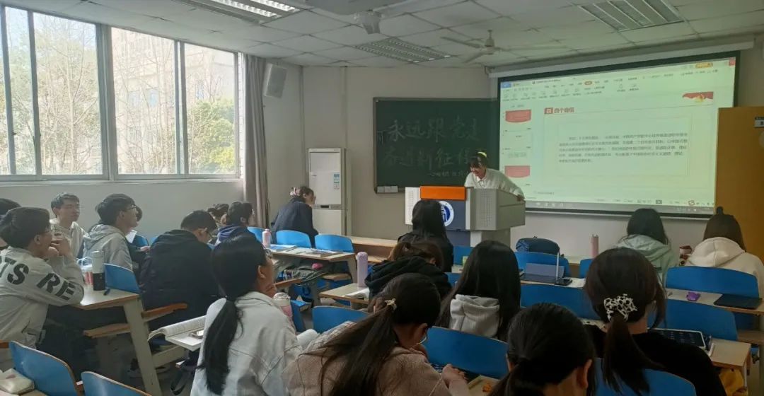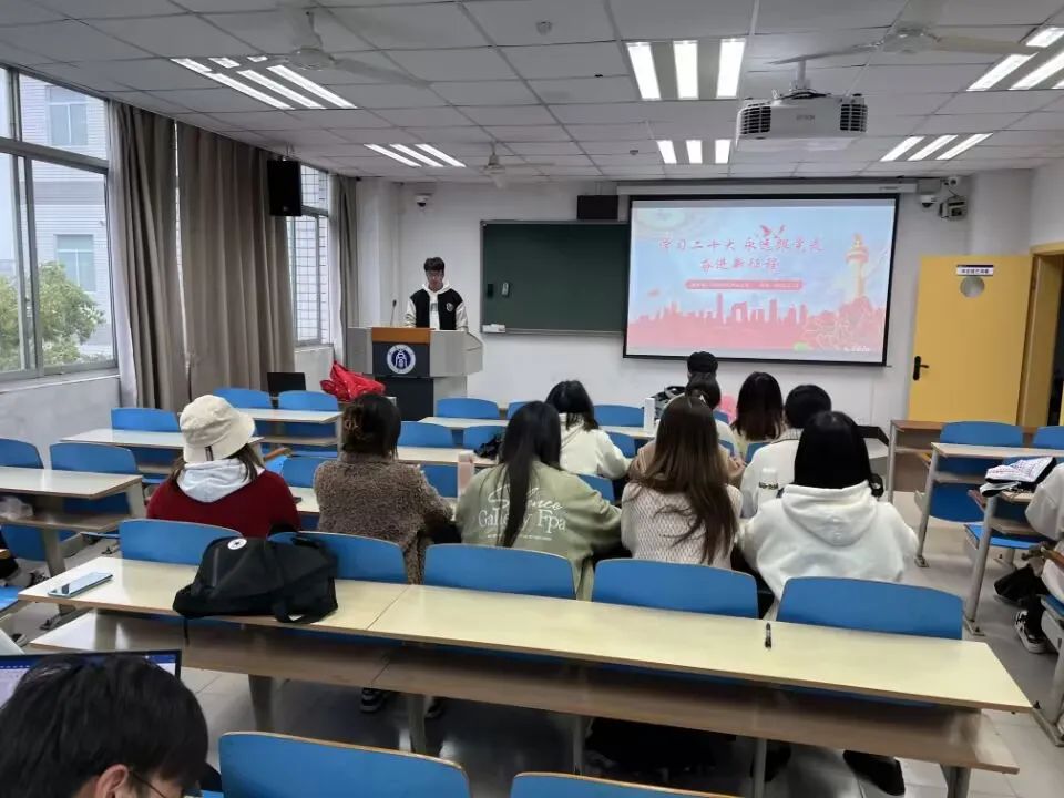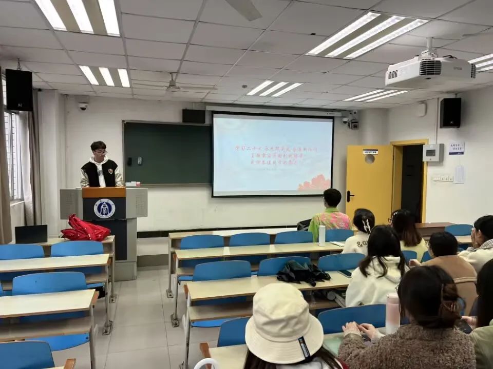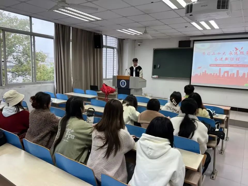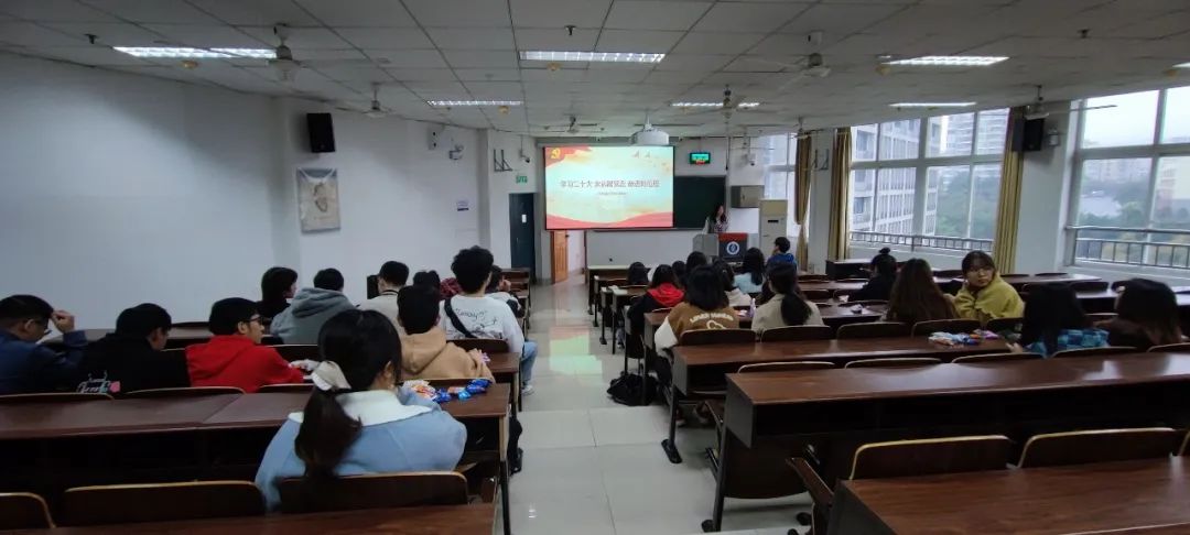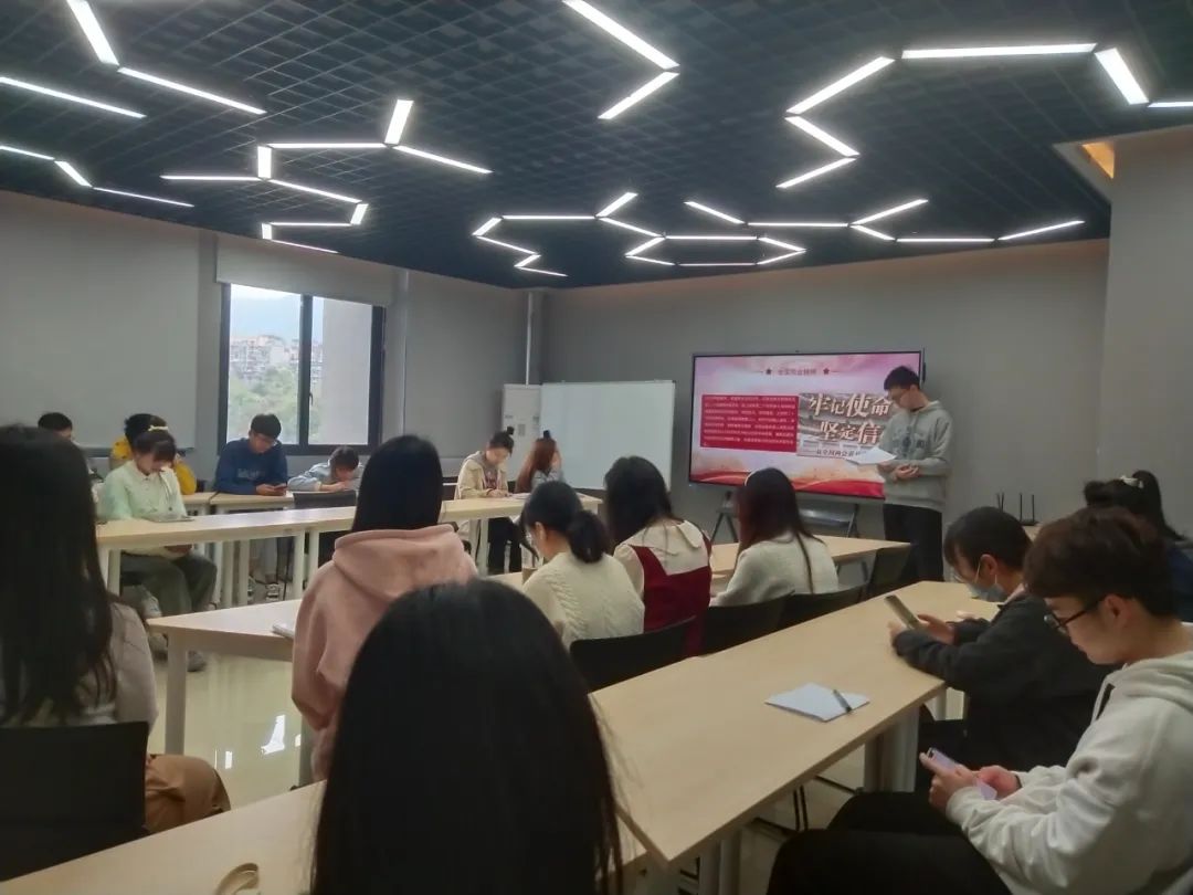 活动中由团支书曾雪玲为同学们讲解“两个确立”、“四个意识”、“四个自信”、“两个维护”的深刻含义,强调全面贯彻习近平新时代中国特色社会主义思想,认真学习党的二十大精神,坚定历史自信、增强历史主动,守正创新、勇毅前行的重要性。