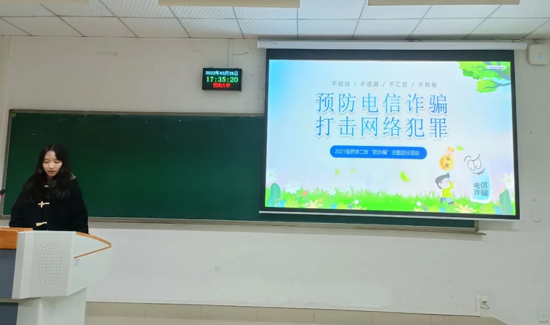 为深入学习党的二十大精神,树立永远跟党走的行为准则及进一步提升同学们防范电信诈骗意识,3月26日,21级药学第二支部开展了学习党的二十大精神及防电信诈骗宣传教育活动。