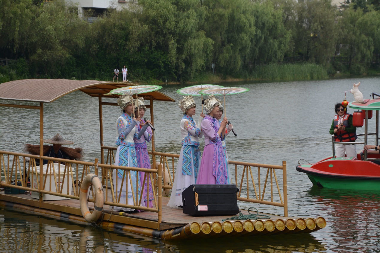 通过调研了解到,黄水的文化旅游产业正在不断创新发展,除去篝火晚会,土家民族民间书法、美术、摄影作品展等,今年又新增加了六七八月每月一次的长桌宴;通过观赏月亮湖上土家族民歌的男女对唱,富有特色的民族服饰,清脆悦耳的啰儿腔调,成员们实地感受到了当地的旅游文化。