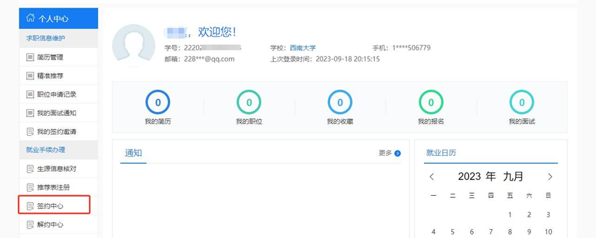 1.登录市教委智慧就业平台:www.cqbys.com,点击“学生登录”,输入账号后进入“个人中心”。