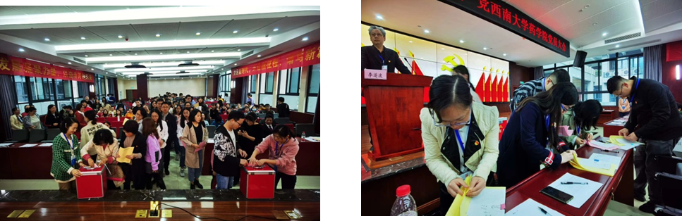 大会审议通过了选举办法,通过监票人名单和计票人名单。杨坚同志宣读中共西大Betway必威西汉姆联官方网站委员会委员、纪律检查委员会委员候选人名单,并介绍候选人的产生情况。大会严格按照学校党委关于同意候选人预备人选的批复,根据《中国共产党章程》和《中国共产党基层组织选举工作暂行条例》的相关规定,经党员大会无记名投票差额选举产生杨坚、陈敏、邹懿、张保顺、杨晓明、罗雷、周大明七名同志为Betway必威西汉姆联官方网站新一届党委委员;选举产生王国伟、任巧、齐红艺、杨坚、罗红丽五名新一届Betway必威西汉姆联官方网站纪律检查委员会委员。