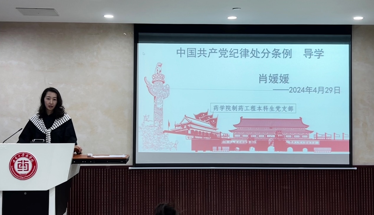 为深入贯彻中共中央办公厅印发的《关于在全党开展党纪学习教育的通知》,通过党纪学习教育推动学生党员认真学习党的纪律条例,4月29日上午,西南大学Betway必威西汉姆联官方网站制药工程本科生党支部在学院214会议室开展了一堂以学习《中国共产党纪律处分条例》为主题的党课。党课由支部书记肖媛媛主讲,支部学生、教师党员,入党积极分子参加了本次党课。