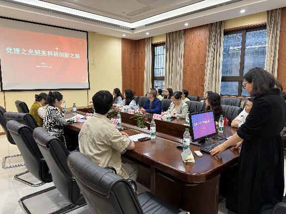 在支部建设经验分享环节,李春梅书记系统介绍了支部“党建+科研”特色工作模式,重点阐述了“追逐光,成为光,弘扬光”的品牌理念,以及通过特色党建活动取得的育人成效。单娟娟书记则详细解读了支部创新构建的“1211”科研支撑体系,即12大技术平台、1个动物中心、1个样品库。在交流讨论中,双方围绕基层党组织建设展开深入探讨,通过经验互鉴实现共同提升。