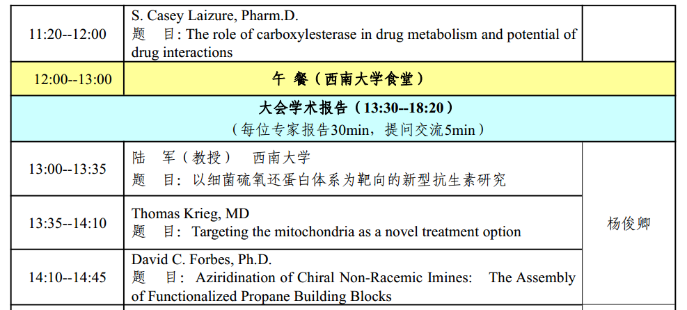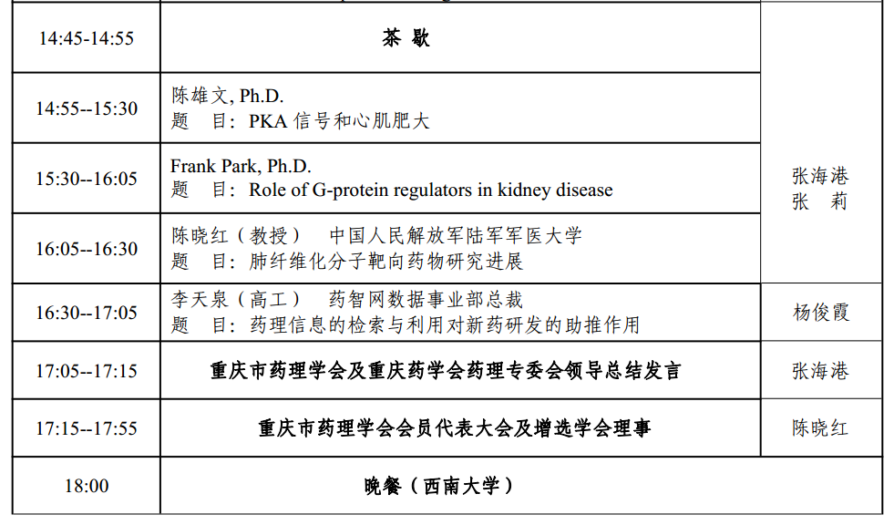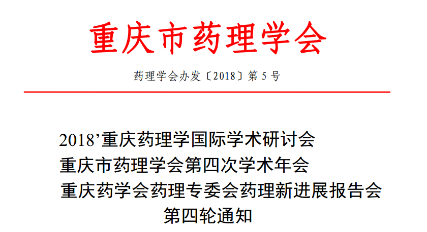 为全面提高我市药理学科研、教学、应用水平,促进我市药理学科的发展,不断提高创新药物研发和临床合理用药的水平,及时交流我市药理学研究所取得的新成果和新经验、增进会员之间的交流与合作,经重庆市药理学会及重庆药学会药理专业委员会研究决定,于 2018 年 7 月 25 日,在西南大学召开“2018’重庆药理学国际学术研讨会、重庆市药理学会第四次学术年会暨重庆药学会药理专委会药理新进展报告会”。本次会议以“创新发展、合作共赢”为主题,将邀请包括英国剑桥大学、美国田纳西大学等国内外知名学府和研究机构的 10 余位专家教授,围绕新药研发前沿技术及分子药理研究热点问题展开讨论,交流、探讨新药研发的实践经验和药物作用新机制,共同探讨现今药理学研究的相关热点和难点问题,为全市广大药理学工作者提供学术交流合作平台,提升我市整体新药研发水平与国际影响力。