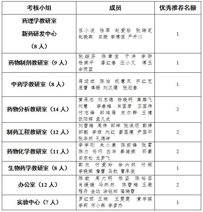 ④办公室、实验中心考核小组推荐人选由考核小组集体研究决定。