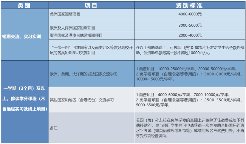 1.学校国际处对符合条件的学生进行资助,资助金额约3000-5000元/人。
