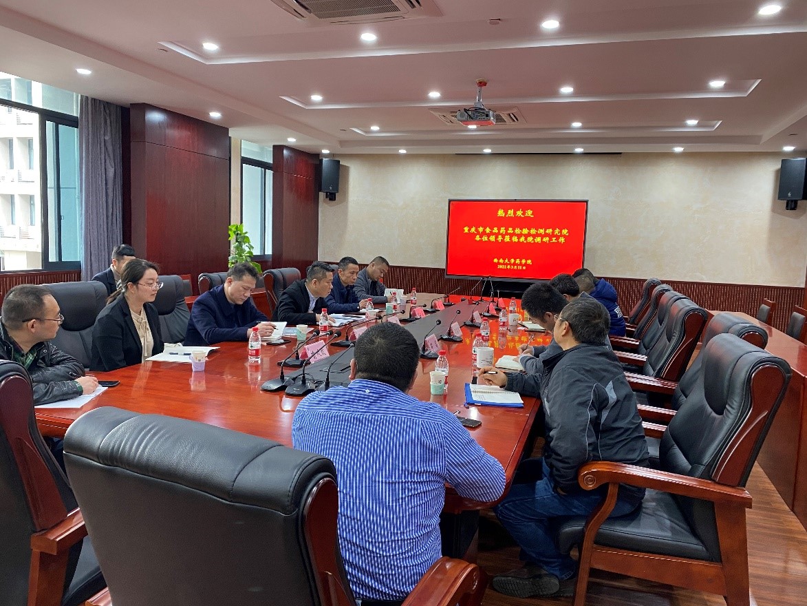 2020年3月11日下午,为深入贯彻“成渝地区双坡经济圈”国家战略,积极落实《成渝地区双城经济圈建设规划纲要》和市委市政府的部署要求, 重庆市食品药品检验检测研究院(简称重庆药监院,下同)一行由张恩副院长带队赴我院调研。科技处胡昌华处长、Betway必威西汉姆联官方网站付志锋院长、罗雷副院长及教师代表出席了调研会议。