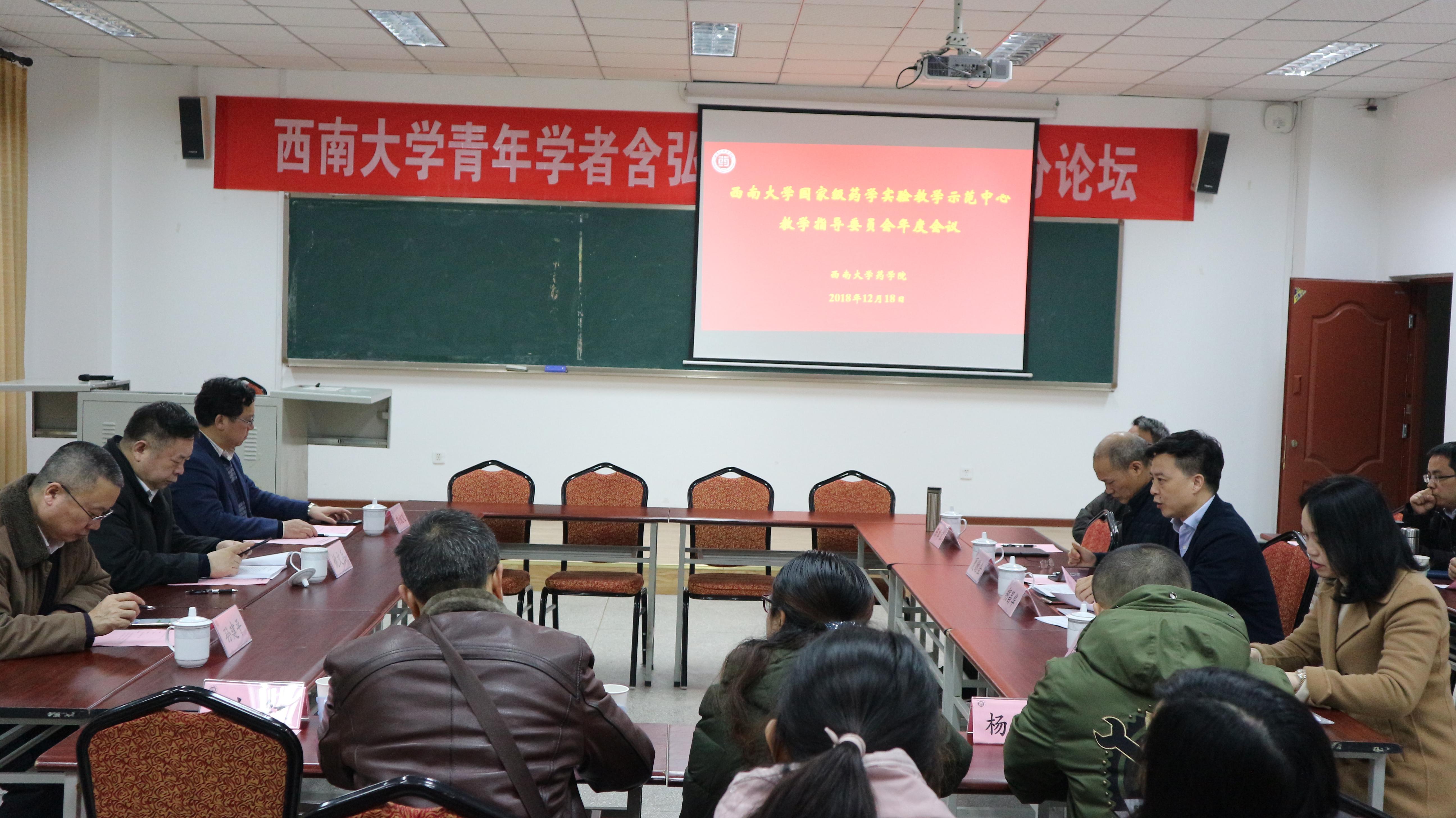 2018年12月18日,学院在38教313室召开了国家级药学实验教学示范中心教学指导委员会年度会议,会议由胡昌华院长主持。会上陈敏副院长首先就人才培养方案的修订、药学专业认证后整改情况、国家级实验教学示范中心年度工作作了详细汇报。接着,国家级药学实验示范中心教学指导委员会成员中国药科大学姚文兵教授、南方医科大学刘叔文教授、哈尔滨医科大学孙建平教授等高度赞扬了我院专业认证后所做的整改工作及取得的成果,对我院人才培养方案作了认真评审,对我院国家级药学实验教学示范中心建设提出了发展建议。