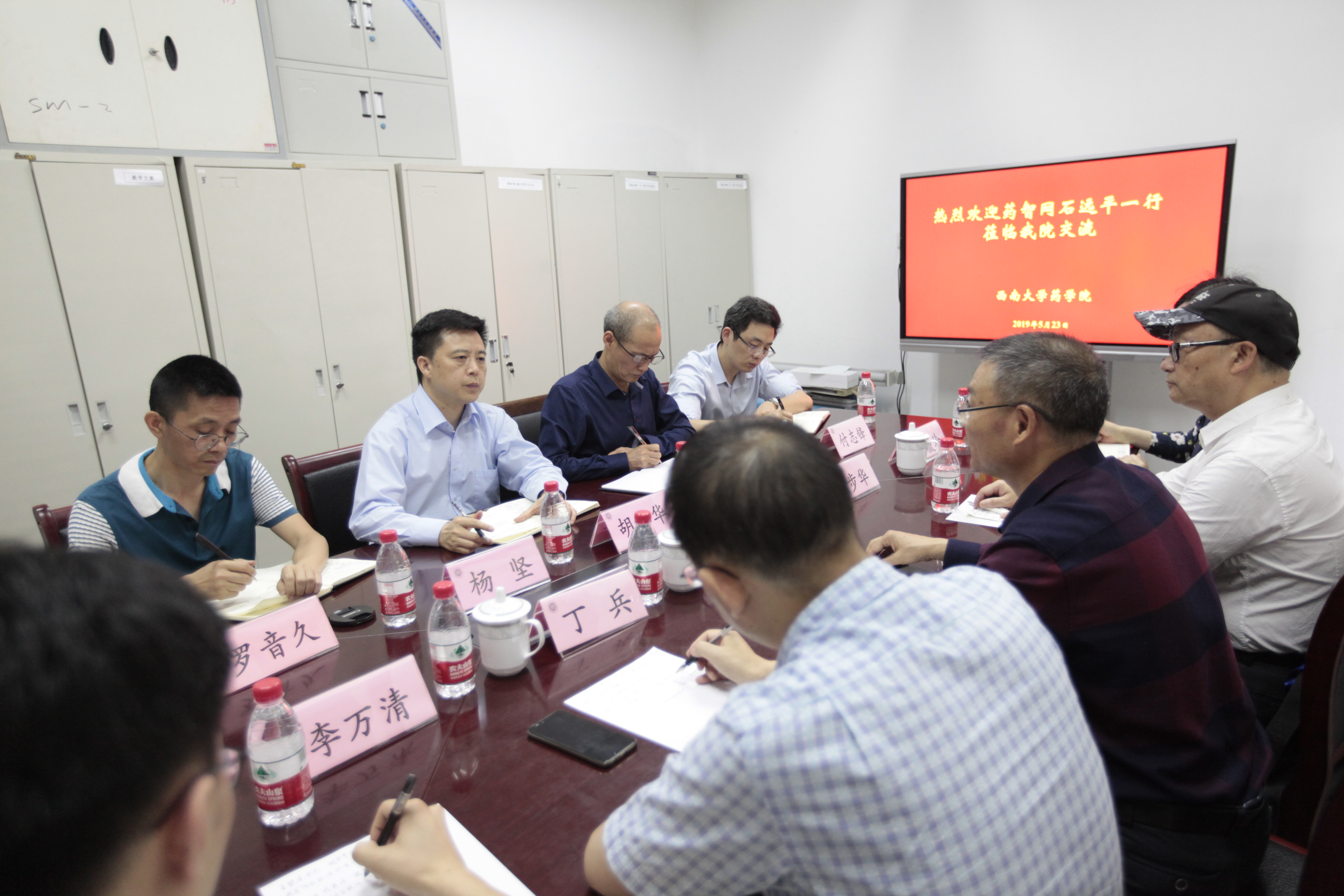 5月23日药智网董事长石远平、副总裁邓步华、营销中心总经理丁兵、总裁助理兼综合部部长李万清、策划部部长范薇琳、数据库顾问黄思瑶一行六人来我院交流座谈,学院院长胡昌华、书记夏德全等出席了座谈会。