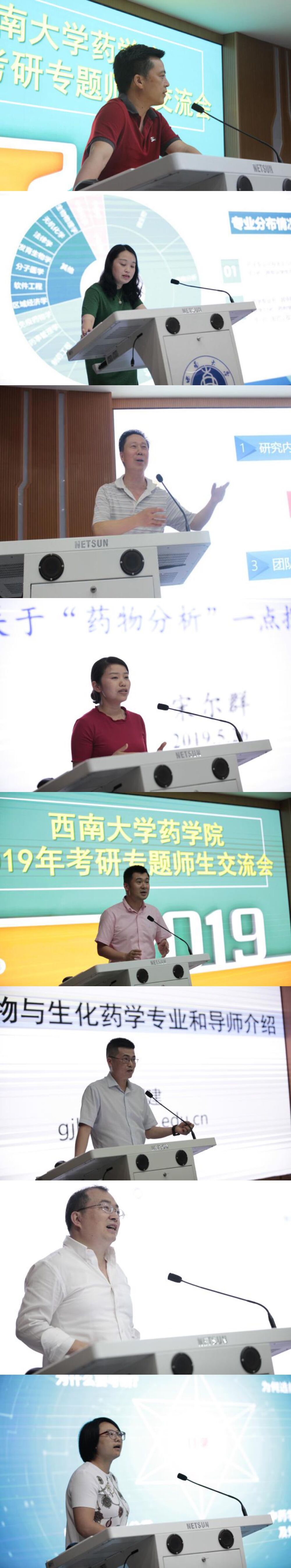 会上,陈敏副院长就我院2015级本科生就业、升学情况和2016级学生拟就业、考研的意向进行了分析。老师们依次介绍了药物化学、药物分析、药理学、微生物与生化药学、中药学、药剂学等专业的专业内涵、发展方向、就业前景以及相关招生院所导师情况,并鼓励同学们尽早确定目标,明确努力方向,做好考研准备。在随后的师生互动环节,同学们就自己关心的问题踊跃提问,老师们耐心细致地进行了针对性解答,并给他们提出了合理化建议。