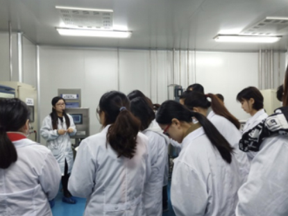 中国药科大学GMP实训中心硬件设施达到国内先进水平,拥有固体制剂(包括片剂、胶囊剂等)、注射剂(最终可灭菌小容量注射剂、塑瓶输液剂、软袋输液剂、冻干粉针剂)、生物制药(L-天冬酰胺酶)、药物合成(对乙酰氨基酚)、中药提取及公用工程(包括制药用水、空气净化等)等多条生产线,为实践教学提供了真实的生产环境。在专业指导老师的带领下,我院学生分为两个小组,交叉对各车间生产环节进行实训学习。实习过程中,同学们仔细聆听、详细记录、认真观察,积极动手拆装部分生产设备,认真学习各生产线的生产流程及各仪器设备的运作过程,并踊跃提出疑问,切切实实将课本内容与生产实际相结合。每天实习结束后,同学们认真书写实习工作日志,对所学知识进行回顾和总结,以强化巩固重要知识点。
