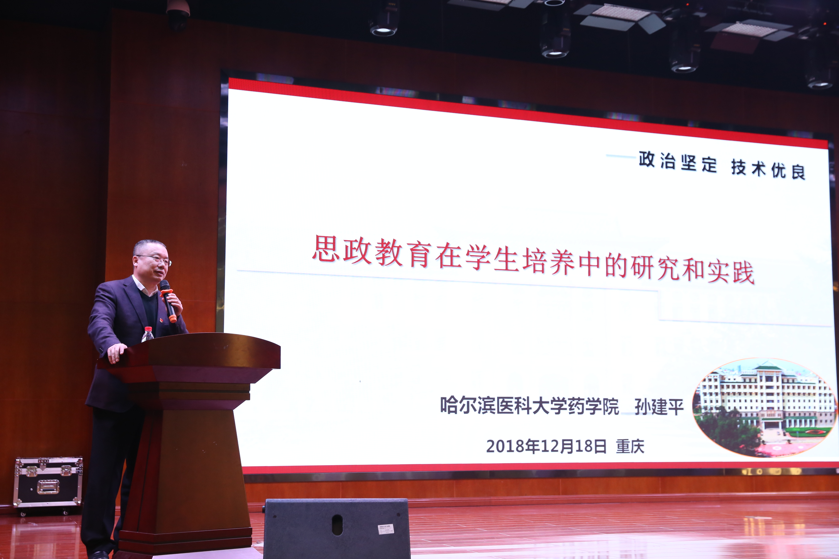 哈尔滨医科大学Betway必威西汉姆联官方网站党委书记孙建平教授以“思政教育在药学专业学生培养中的研究与实践”为题,结合药学学生特点,从专业教育、人文精神、大数据应用等全新视角探讨了药学人才培养中思想政治教育问题。