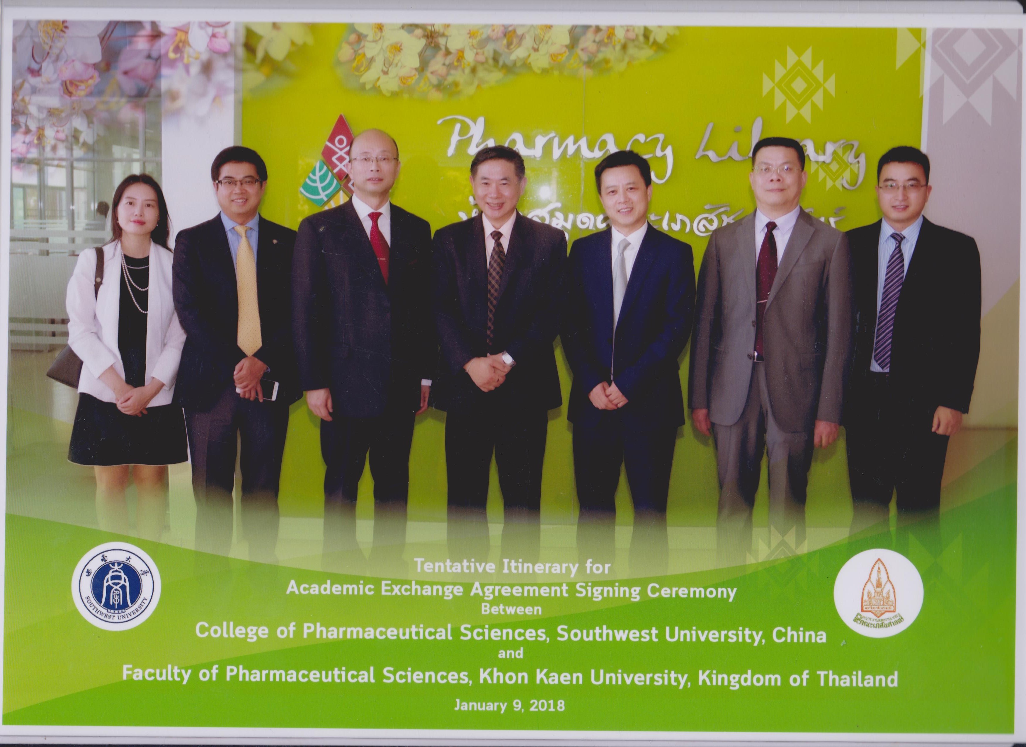 2018年1月9日, 西南大学Betway必威西汉姆联官方网站与泰国孔敬大学(KhonKaen University)Betway必威西汉姆联官方网站学术交流合作协议签署仪式在泰国孔敬大学Betway必威西汉姆联官方网站会议中心举行,学校校长助理刘光远、国际处处长张发钧、科技处处长黄承志出席并见证了签约仪式。