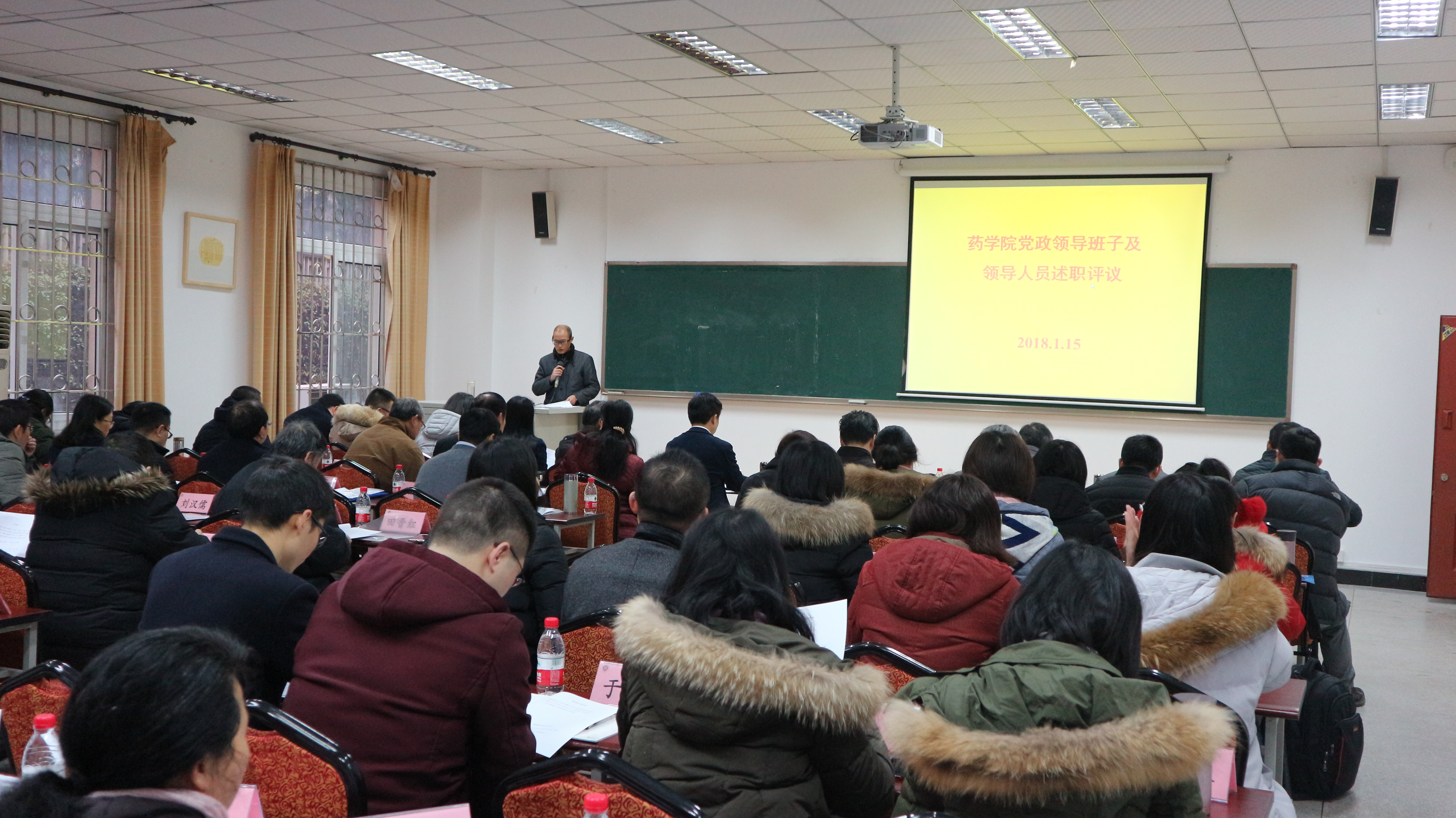 1月15日,学院召开2017年党政领导班子及领导干部述职与民主测评会。学院党委书记夏德全主持会议,并代表学院党政领导班子述职。班子其他成员依次做个人述职报告。学校机关党委办公室主任梅胜利出席会议,学院全体职工参加会议。