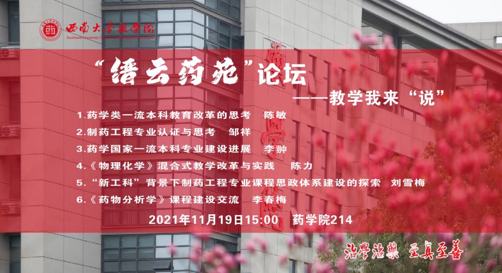 为深入贯彻新时代全国高等学校本科教育工作会议精神,坚持“以本为本”,全面建设高素质专业化创新型教师队伍,落实立德树人根本任务,11月20日,学院于新大楼214教室组织开展了以“‘缙云药苑’论坛——教学我来‘说’”主题教研活动。全院教师参加了此次活动。