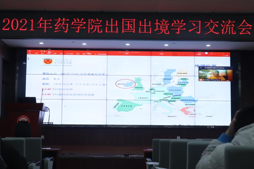 为明确学生发展规划,激发学习动力,提升国际视野,学院于12月21日晚在学院B113报告厅成功举办了2021年度Betway必威西汉姆联官方网站出国出境交流学习会。受新冠疫情影响,此次会议仍采取视频会议的形式举行,爱尔兰卡洛理工大学曲一菲老师、2016级校友韩叙和张娇出席会议。学院副院长、学院外事工作负责人陈敏教授、学院外事秘书冯然然老师及来自学院药学专业和制药工程等专业的本科生和研究生共计200余名参加了本次交流学习会。