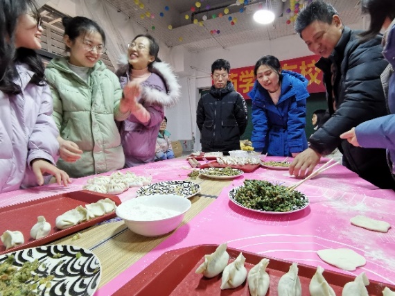 在中华传统文化中,饺子取“更岁交子”之意,有团圆美满、平安如意的寓意。师生们各显身手,分工明确,忙的不亦乐乎,把喜庆和进馅儿里,把祝福包进皮儿里,期待未来的日子像锅里的沸水一样红红火火。