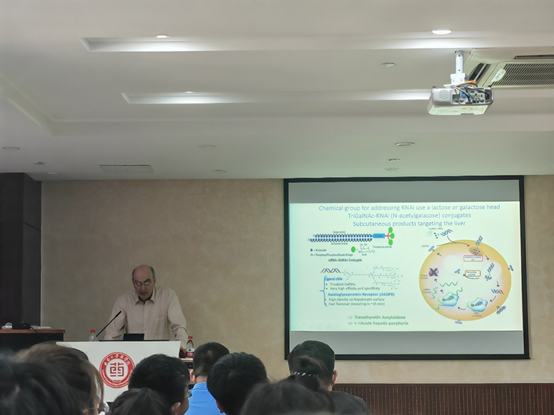 Daniel Scherman 教授以“Oligonucleotide siRNA and mRNA drugs and vaccine”为主题行进了报告。该学术报告会议由学院外事秘书冯然然老师主持,学院部分教师和本科生共计90余人参加。