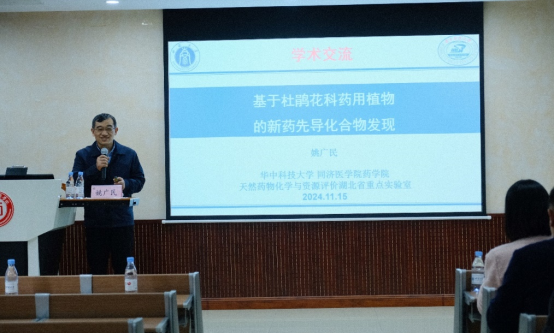 11月15日,华中科技大学同济医学院Betway必威西汉姆联官方网站姚广民教授以“基于杜鹃花科药用植物的新药先导化合物发现研究”为主题,对课题组从杜鹃花科中发现无成瘾性强效镇痛药物、基于PTP1B新靶点降血糖药物和基于PDI、Syk新靶点抗血栓药物等先导化合物的研究工作做了精彩的报告。