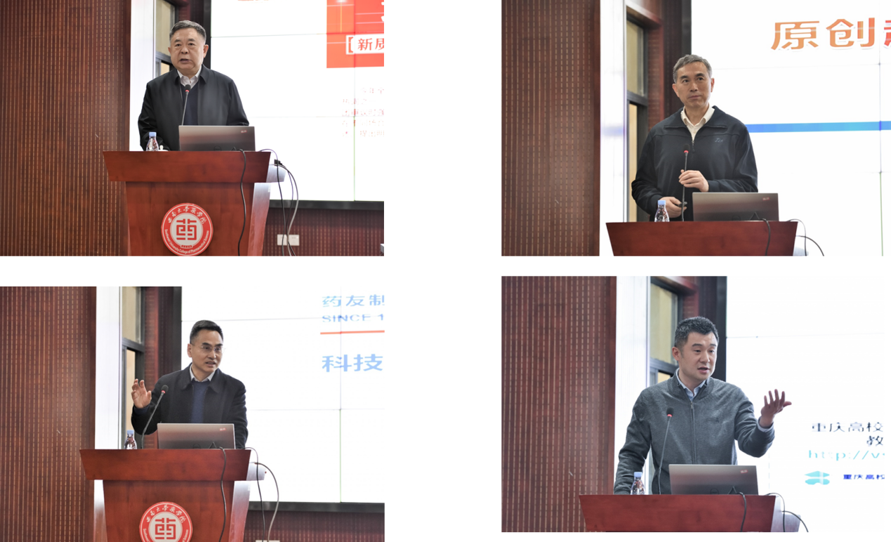 在专家主题报告环节,温州医科大学校长李校堃院士围绕“细胞生长因子类药物的理论创新与临床转化研究”进行深入讲解,分享了从基础研究到临床应用的关键突破和实践经验;中国药科大学原副校长姚文兵教授以“产教融合培养药学拔尖创新人才”为主题,探讨了多学科交叉与校企协同合作在高层次药学人才培养中的实践路径;陆军军医大学邹全明教授结合自身经历,分享了“原创疫苗及抗体药物的转化研究实践与体会”,展示了军民融合领域药物研发的创新案例;重庆药友制药有限责任公司董事长刘强作了题为“科技引领,校企共赢”的报告,详细介绍了企业通过与高校合作推动技术创新、实现共赢发展的成功模式;西南大学Betway必威西汉姆联官方网站院长罗雷教授以“西南大学药学产教融合建设”为例,全面总结了西南大学Betway必威西汉姆联官方网站在药学教育与区域产业融合方面的实践探索,为推动重庆药学教育与产业发展提供了新思路和新方向。