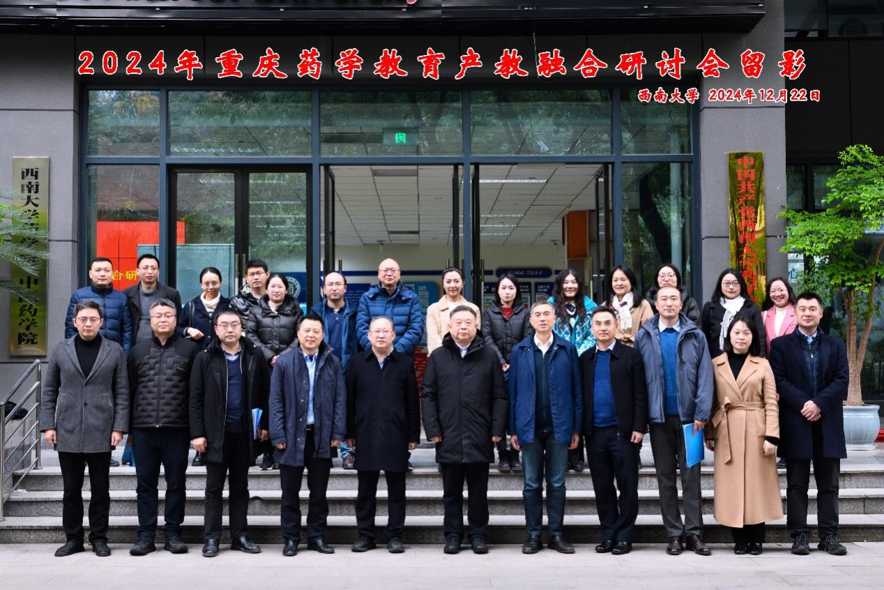 2024年12月22日,重庆药学会和西南大学主办、重庆药学会药学教育专委会和西南大学Betway必威西汉姆联官方网站承办的2024年重庆药学教育产教融合研讨会在西南大学药学大楼圆满召开。本次研讨会汇聚了重庆地区药学教育领域相关Betway必威西汉姆联官方网站系的领导、专家学者以及企业代表及相关从业人员150余人,同时邀请国内多位知名专家,共同探讨药学教育与产业协同发展的新模式、新路径,分享产教融合的宝贵经验和研究成果。
