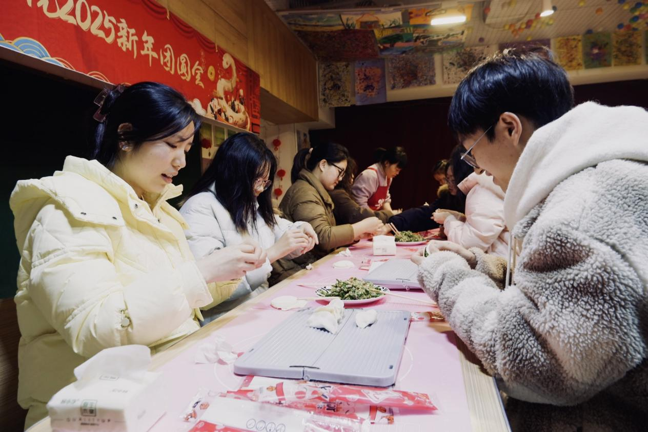 包饺子环节中,大家纷纷动手尝试,尽管有些笨拙,但热情丝毫不减。有的同学把饺子包成了元宝形状,寓意着新的一年财源滚滚;有的则别出心裁,做出了花边饺子,像是一件件精美的艺术品。笑声不断从人群中传来,几位南方的同学表示,虽然家里不常包饺子,但在这样的场合下体验传统文化非常有意义。