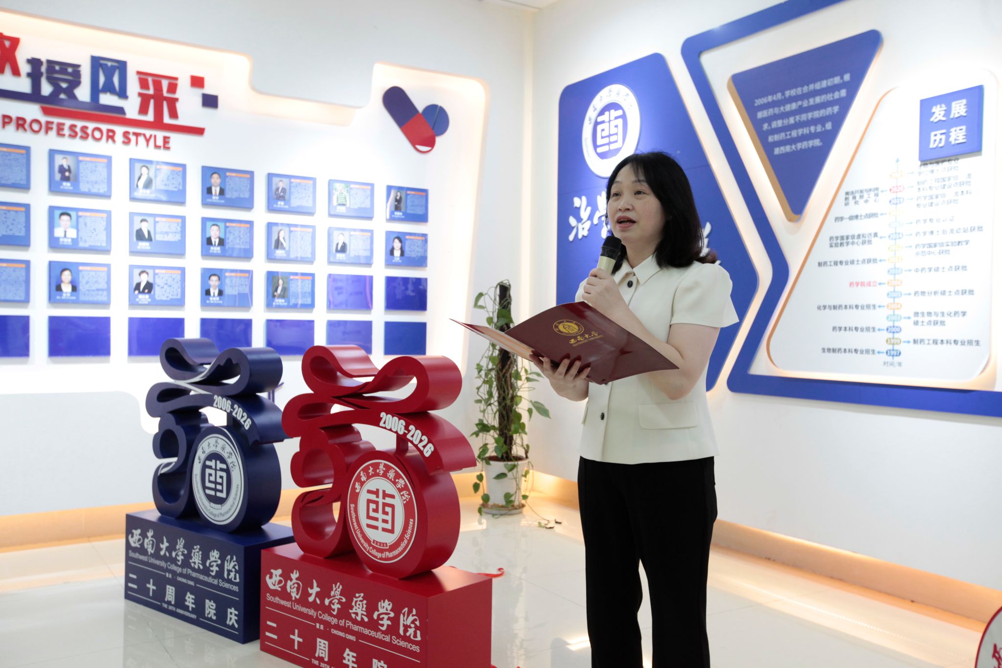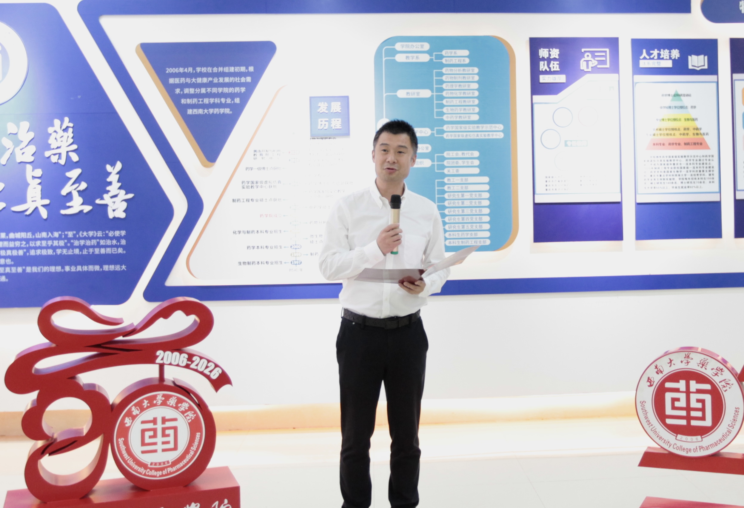 学院院长罗雷为揭牌仪式致辞,他全面回顾了学院二十年的发展历程。他指出,学院始终秉持着“治学治药,至真至善”的院训,在师资队伍力量、人才培养体系、科学研究基础和国际交流合作等方面稳步发展。面向未来,学院将以20周年院庆为契机,聚焦新方向,深化新合作,力争建成西南地区药学人才培养与科技创新高地。