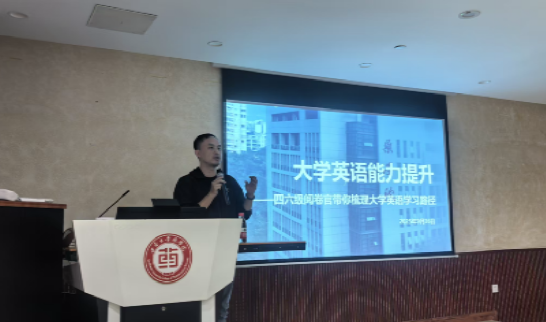 随后,为助力新生夯实国际交流的英语基础,学院特别邀请新东方杨康实老师为同学们带来英语能力提升专题培训。杨老师结合中外合作办学学生的实际需求,分享了英语学习中听、说、读、写各项技能全面提升的实用方法,并推荐了优质学习网站与高效备考书籍。