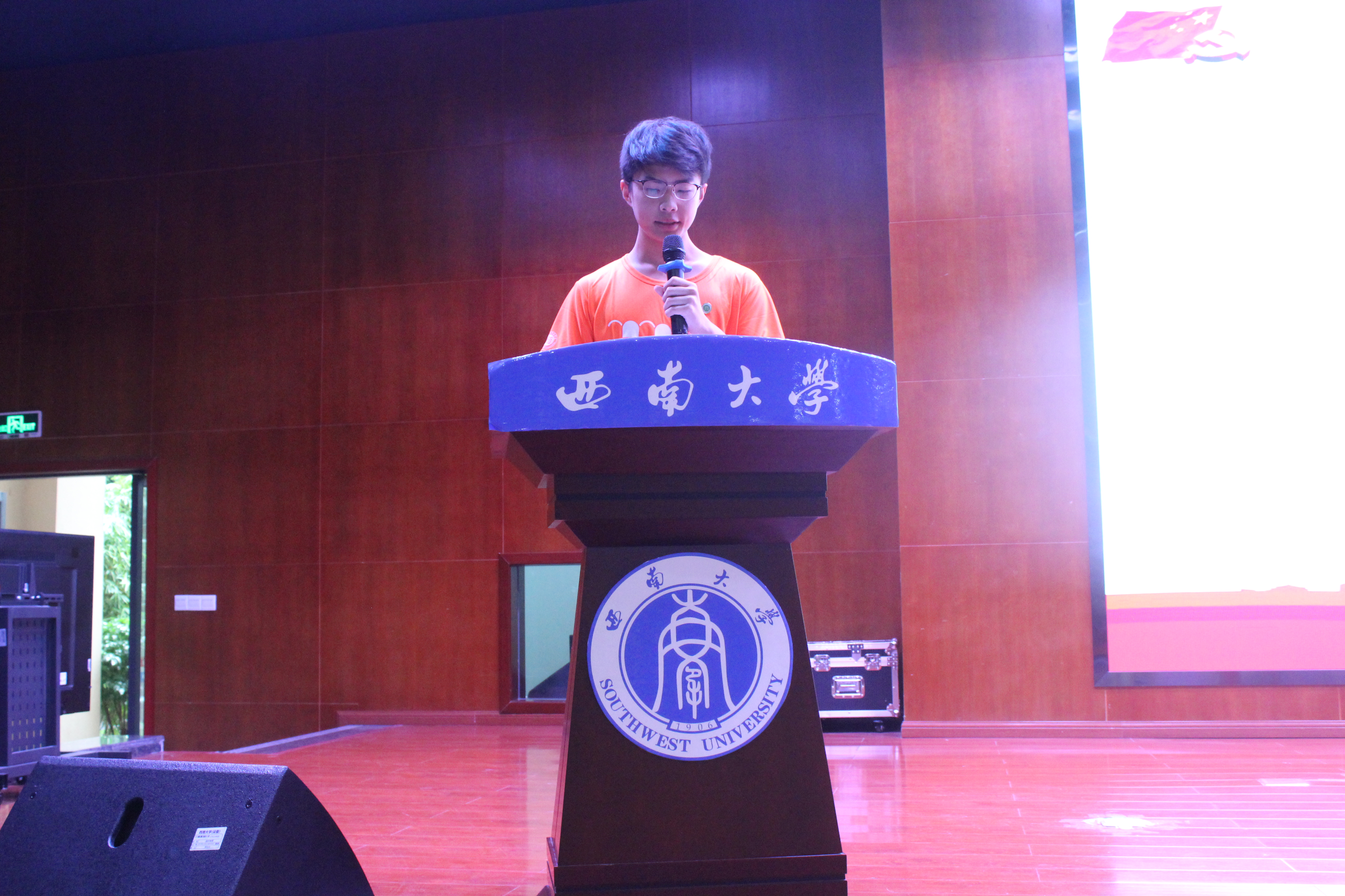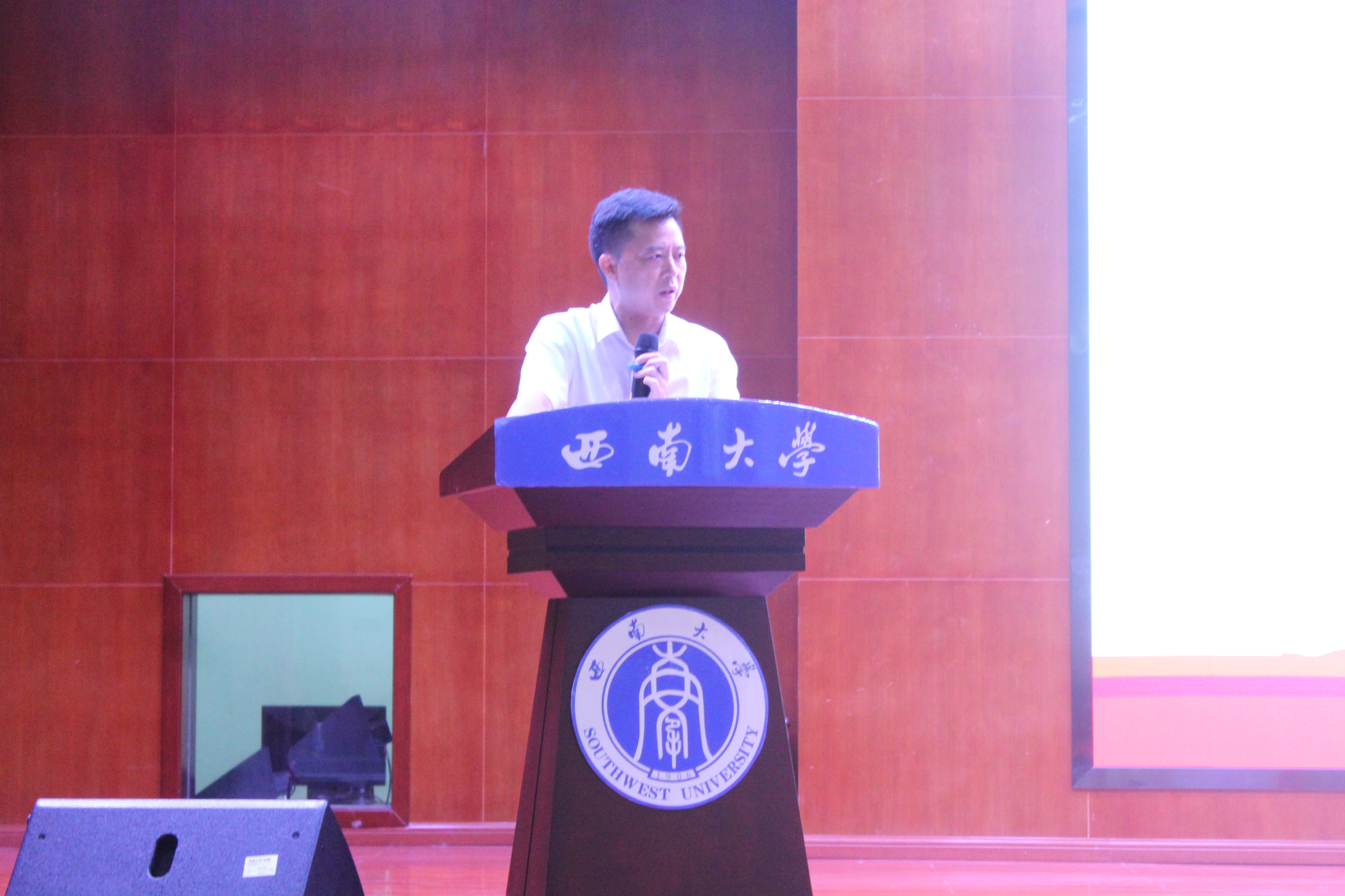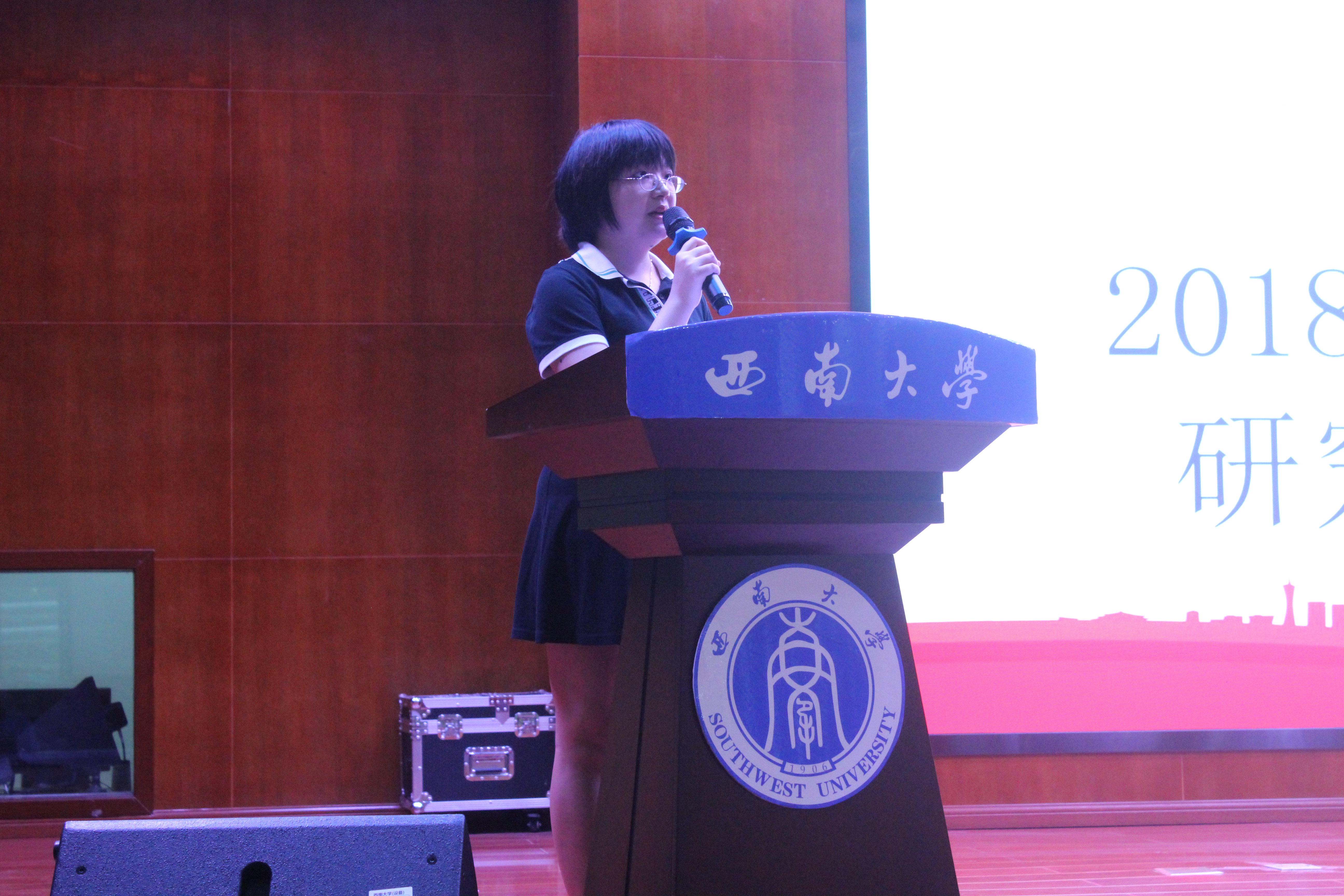 教师代表宋尔群教授就西南大学与药学专业的历史发展入题,表明师生相逢即是有缘,以前辈、老师和朋友的多重身份对同学们提出了殷切的希望,希望同学们在以后的学习中主动学习、懂得独立,能够处理好人际关系并拥有梦想。