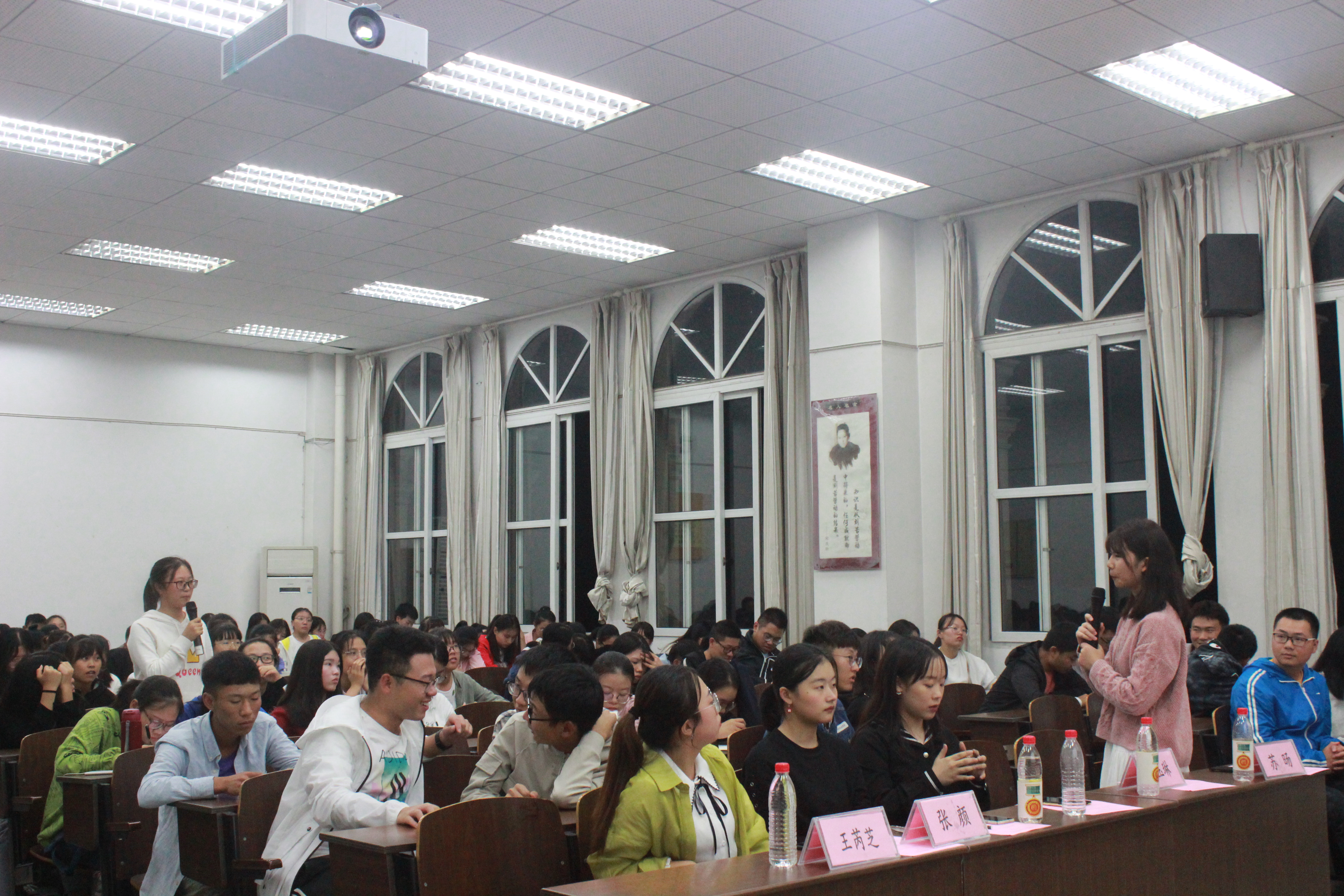 最后的自由提问和交流环节,学生就活动资金、活动时间和场所、安全隐患这三个问题向实践就业部成员提问,得到了满意的答复。