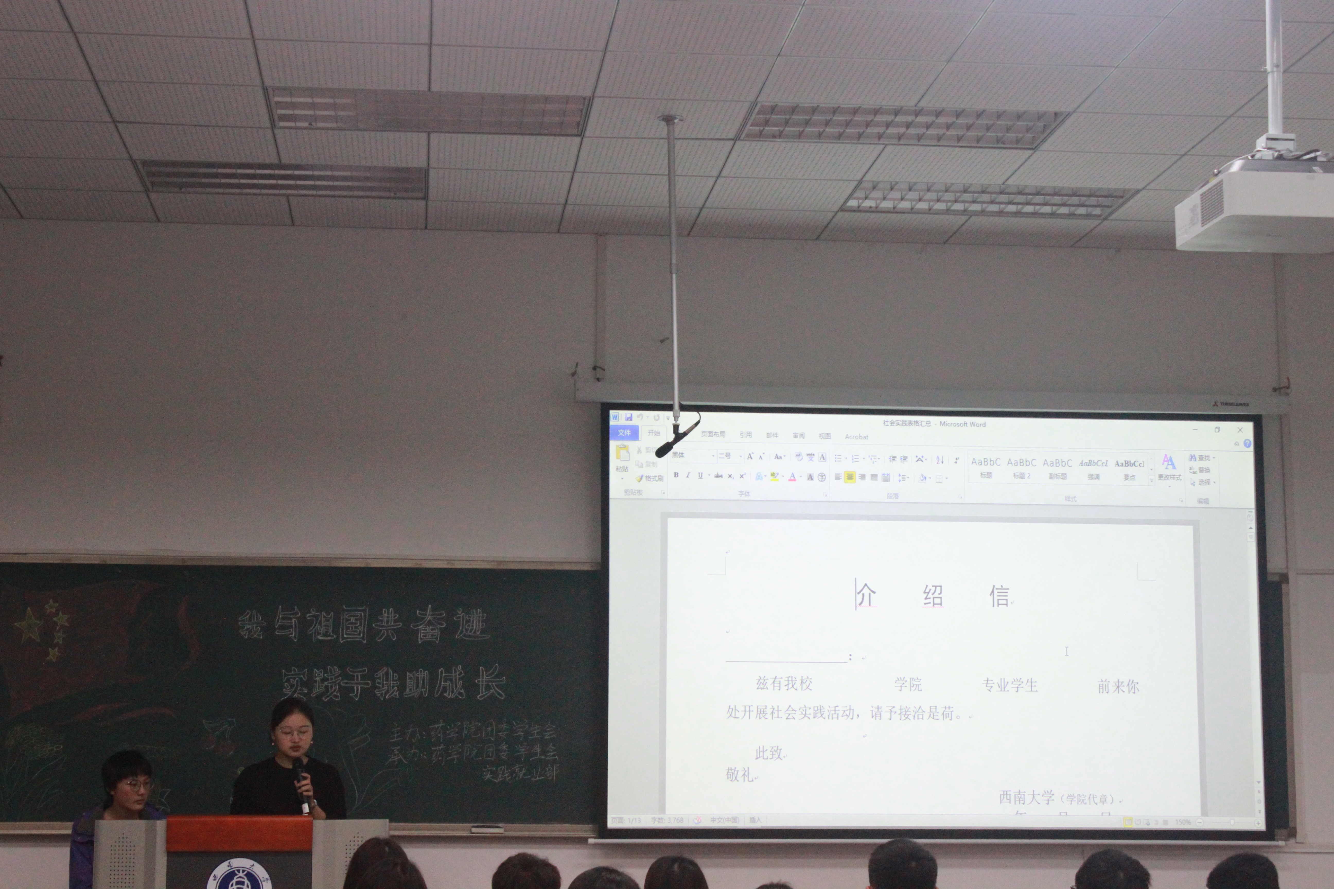 实践就业部张颜则从新生进行实践活动的基础认知和事前准备出发,为新生答疑解难。她详细阐述了介绍信的书写格式和注意点,并介绍了药学专业药房认识以及制药工程专业药厂认证实习的相关事宜。她还强调了实践活动对于大学生学习和未来就业的重要性。