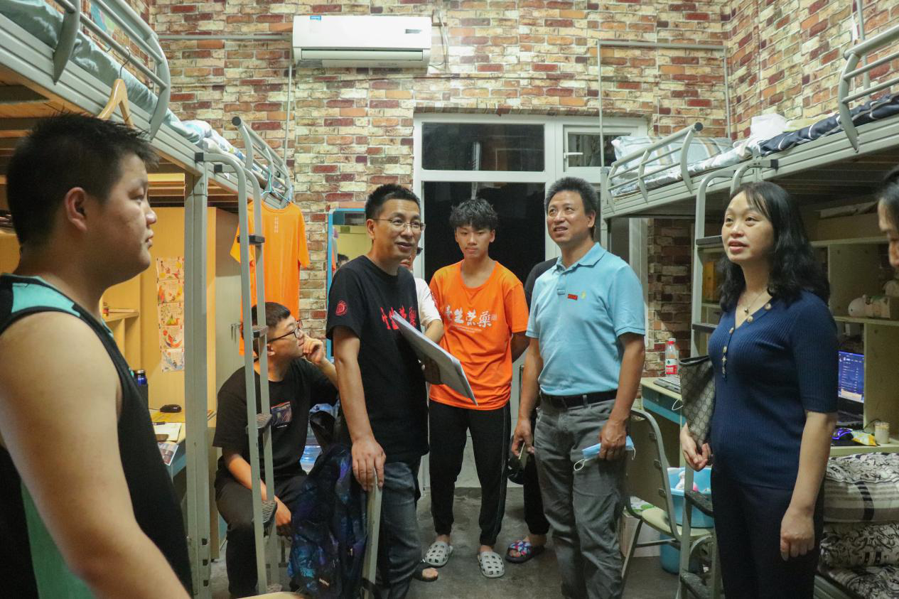 周大明书记详细询问了新生们的生源地等情况,勉励同学们要志存高远、脚踏实地,养成保持良好的读书和生活习惯,规划好未来,争取学有所成。同时,周书记仔细检查新生宿舍设施,提醒新生注意住宿安全。