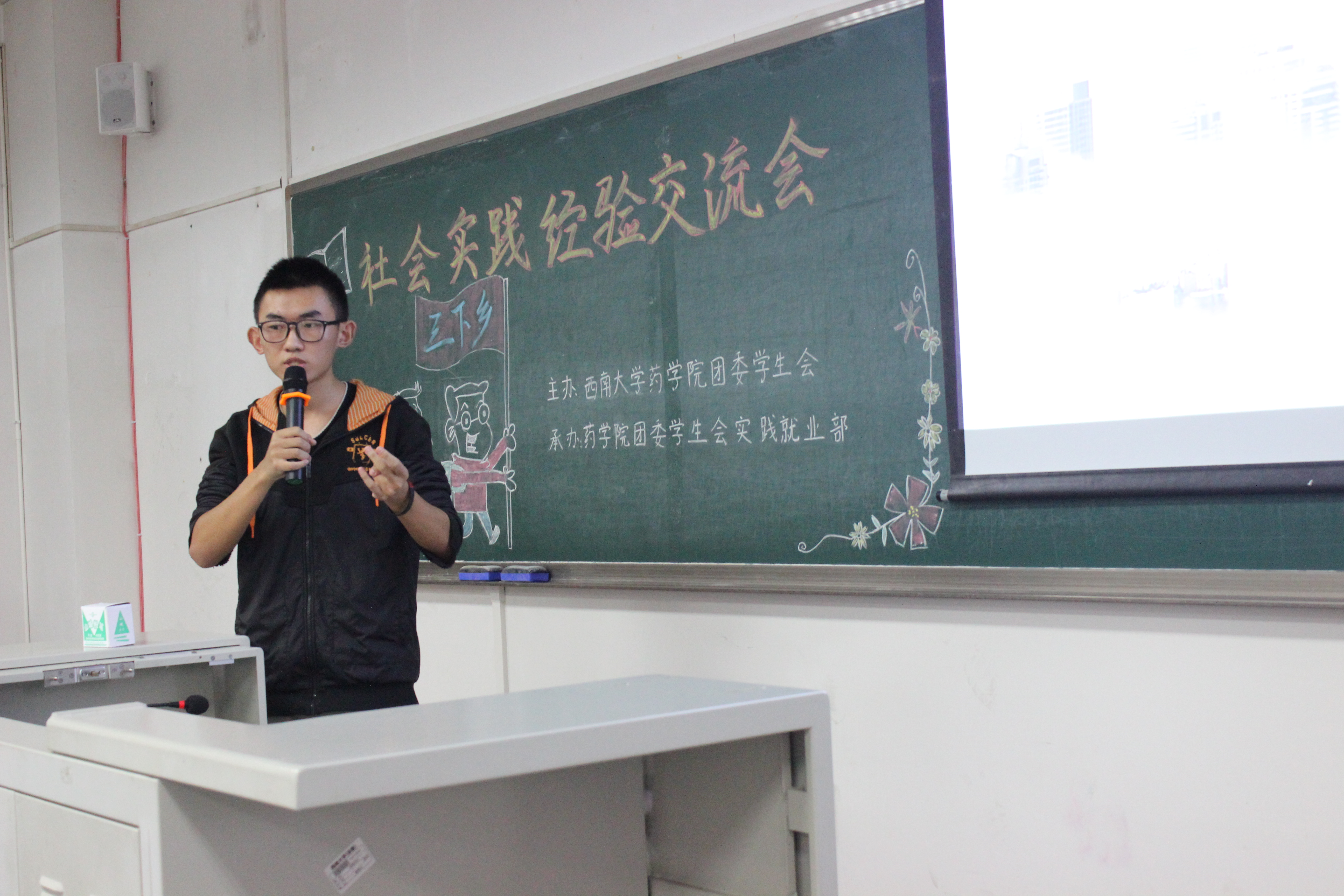 2018年10月19日下午三点,由西南大学Betway必威西汉姆联官方网站团委学生会主办,Betway必威西汉姆联官方网站团委学生会实践就业部承办的2018社会实践经验交流会于38教506室开展。Betway必威西汉姆联官方网站团委书记肖媛媛、团委副书记陈相宏、团委学生会主席孟繁婧、团委学生会副主席赵亚男、四川宜宾小分队队长杨顺、重庆巴南小分队队长朱萍、药云南曲靖小分队队长薛锦辖出席此次交流会,交流会由龚龙城、胡玉香主持。