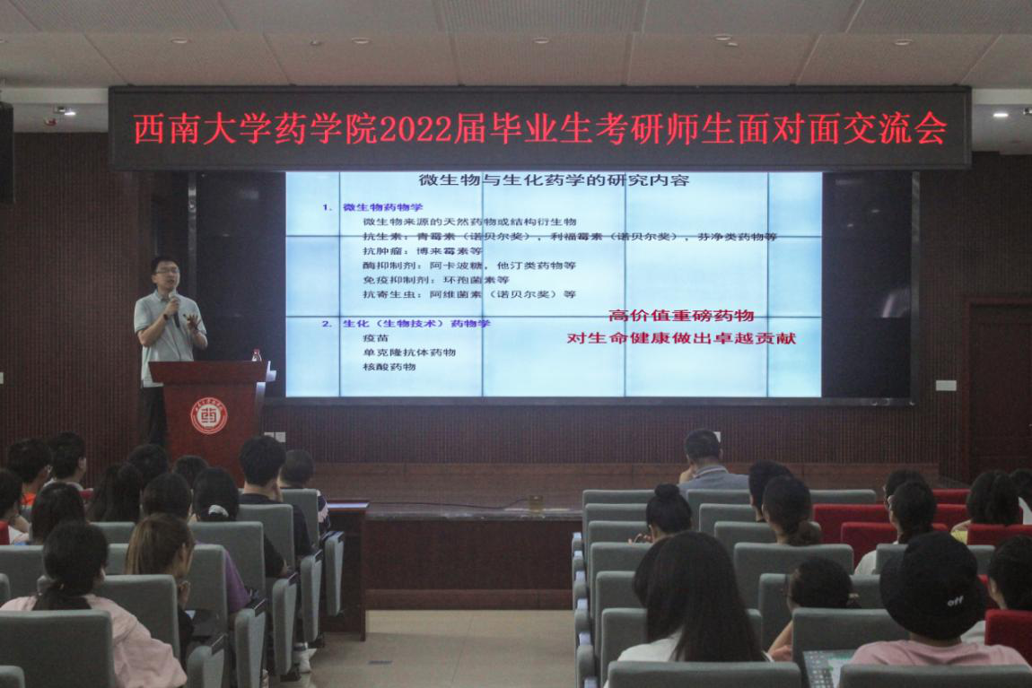 罗雷、邹懿、杨晓明、秦绪荣、齐红艺、刘红、李逐波等七位教授分别从药剂学、微生物和生化药学、生物与医药专业、药物分析学、药物化学、中药学、药理学等几个方面介绍研究内容、相关优秀院校的发展空间和政策支持,并为同学们的复习提出了宝贵建议。老师们数据详实、专业知识丰富、语言风趣,让同学们进一步明晰了今后的考研方向。
