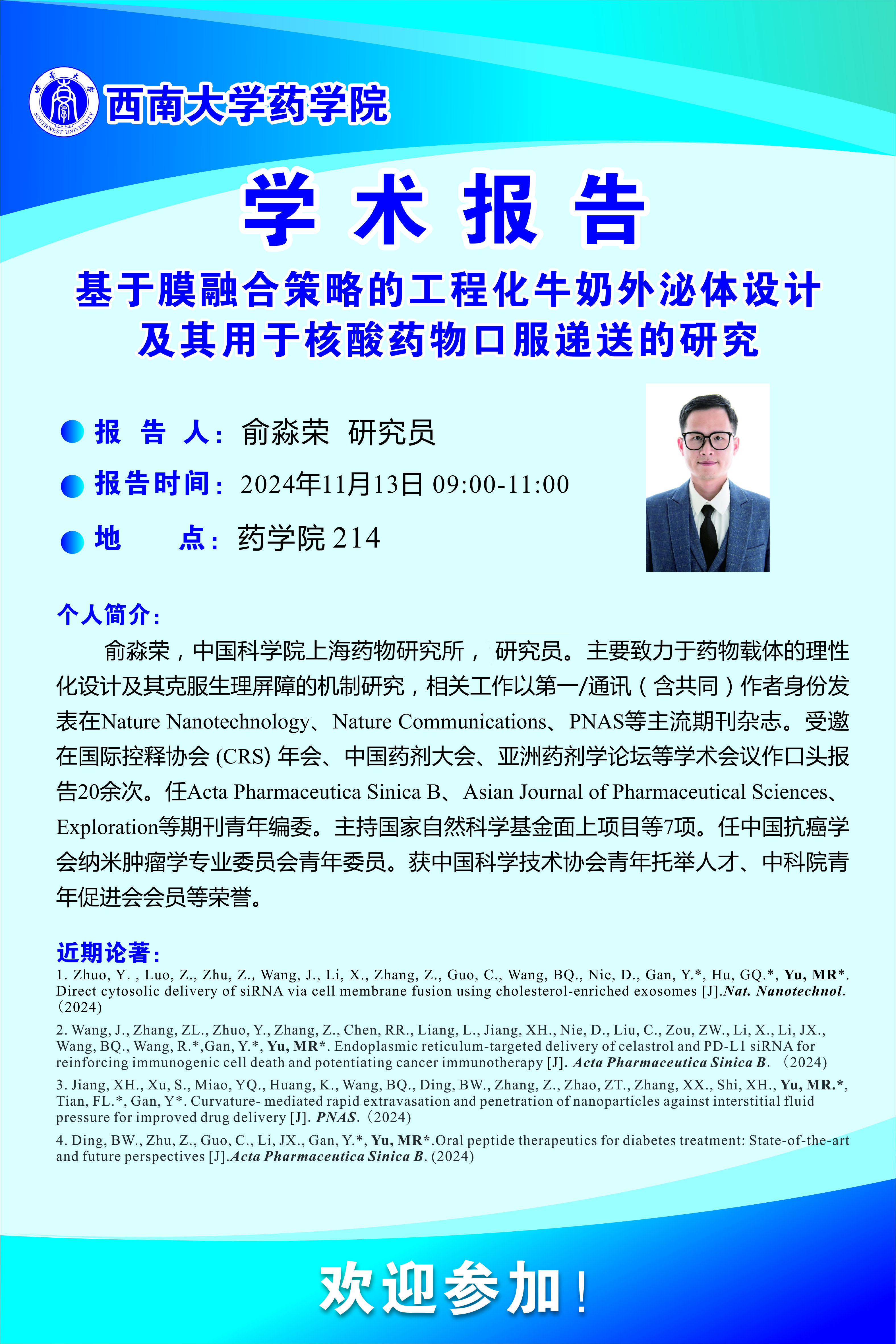 缙云药学论坛暨Betway必威西汉姆联官方网站建院20周年系列报告会(一):俞淼荣研究员学术报告