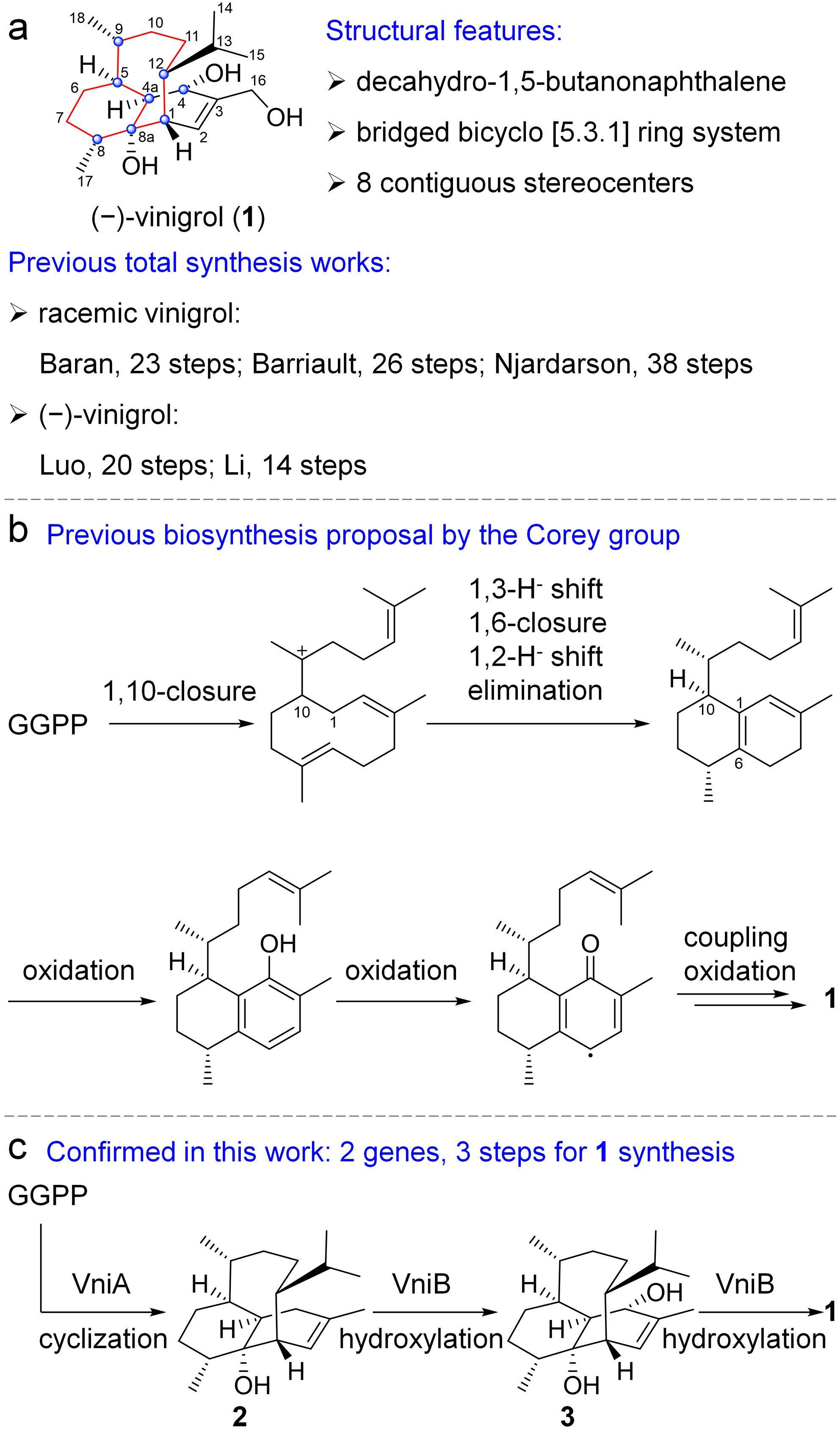 该研究展示了自然界在复杂多环体系分子中的合成艺术,同时为未来()-vinigrol及其衍生物的仿生合成和代谢工程生产提供了值得借鉴的例子